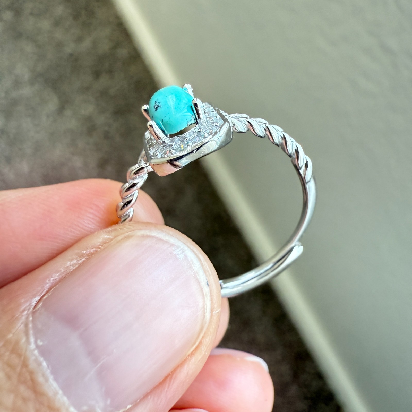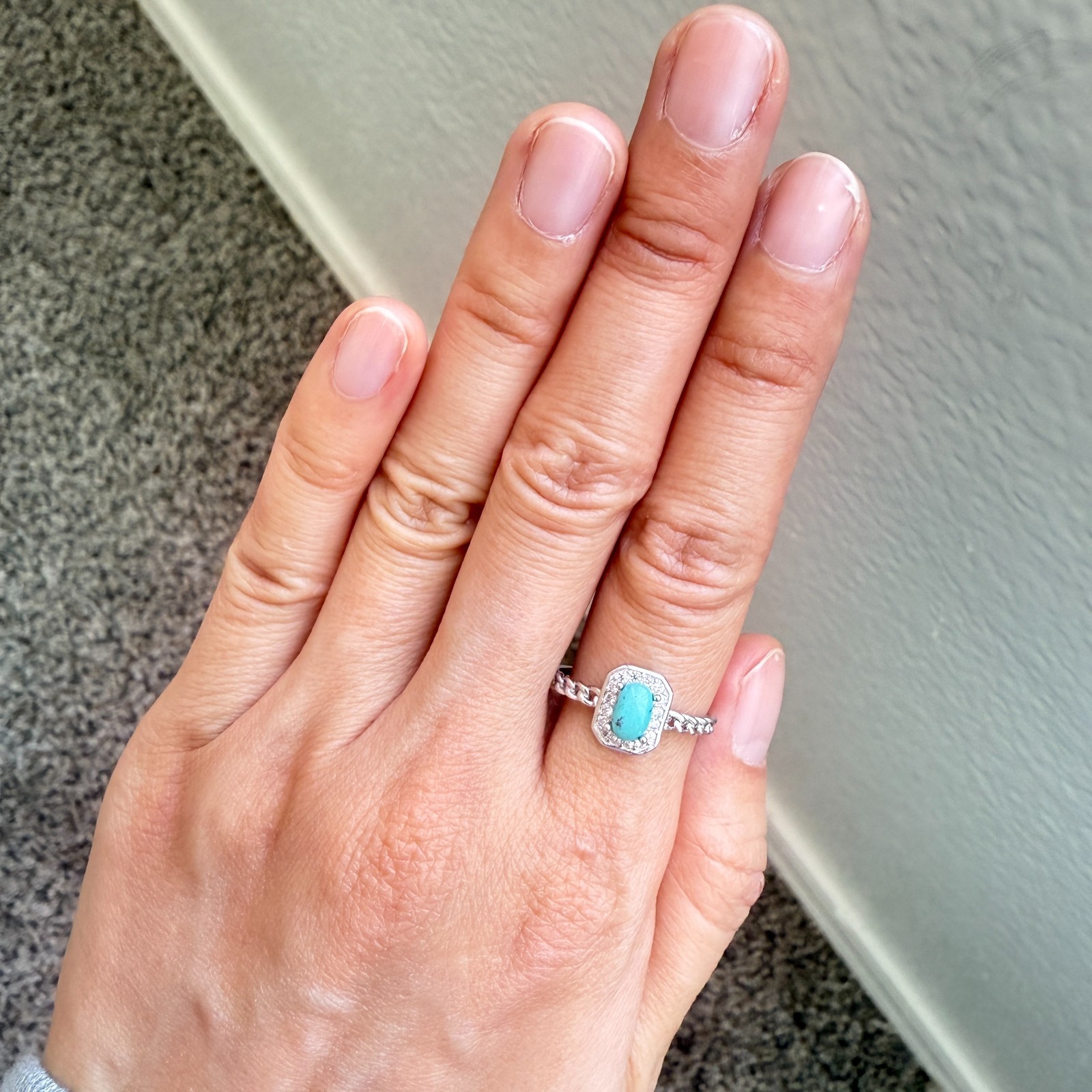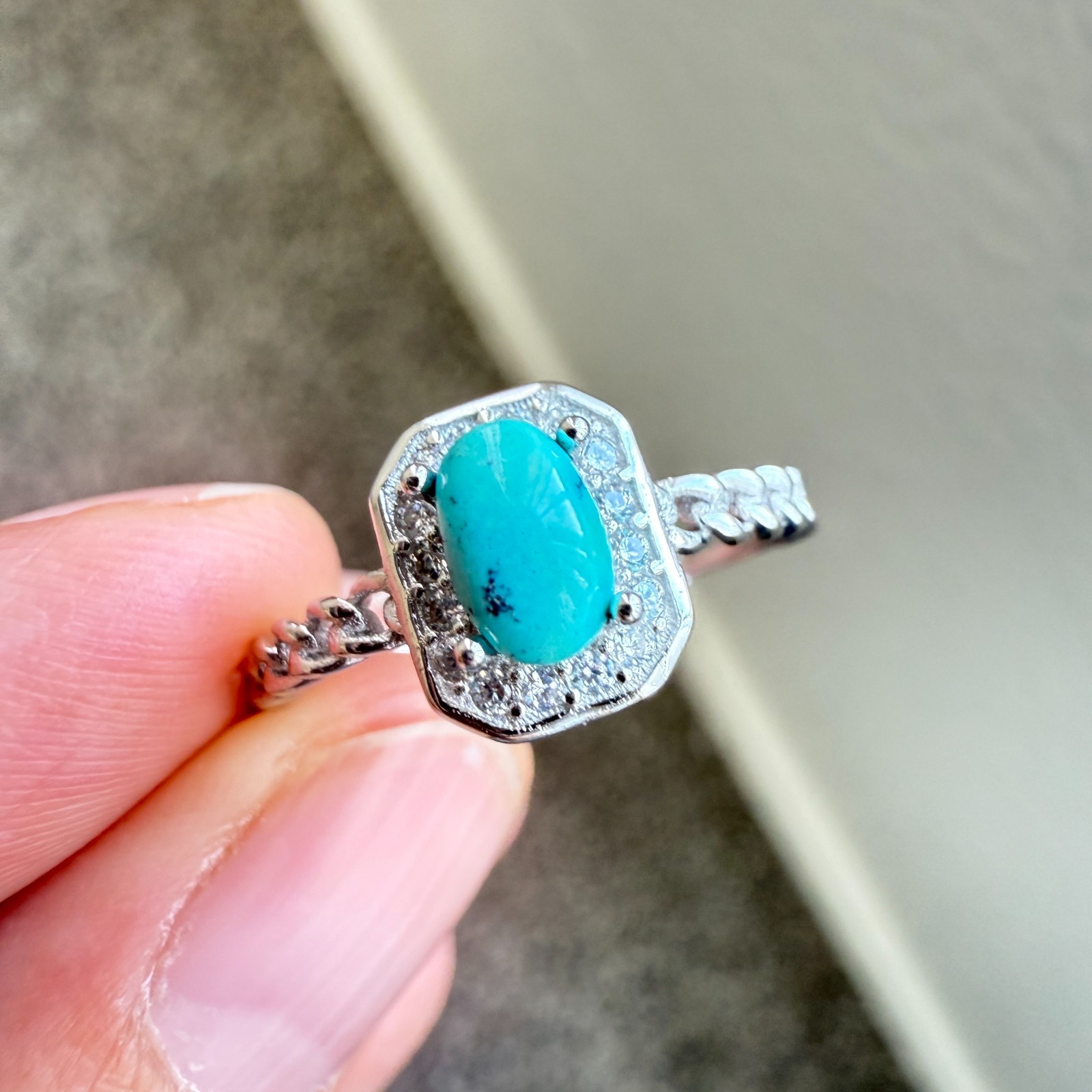 925 Sterling Silver Ring Turquoise 5x3mm Natural Blue Gemstone Zircon Women