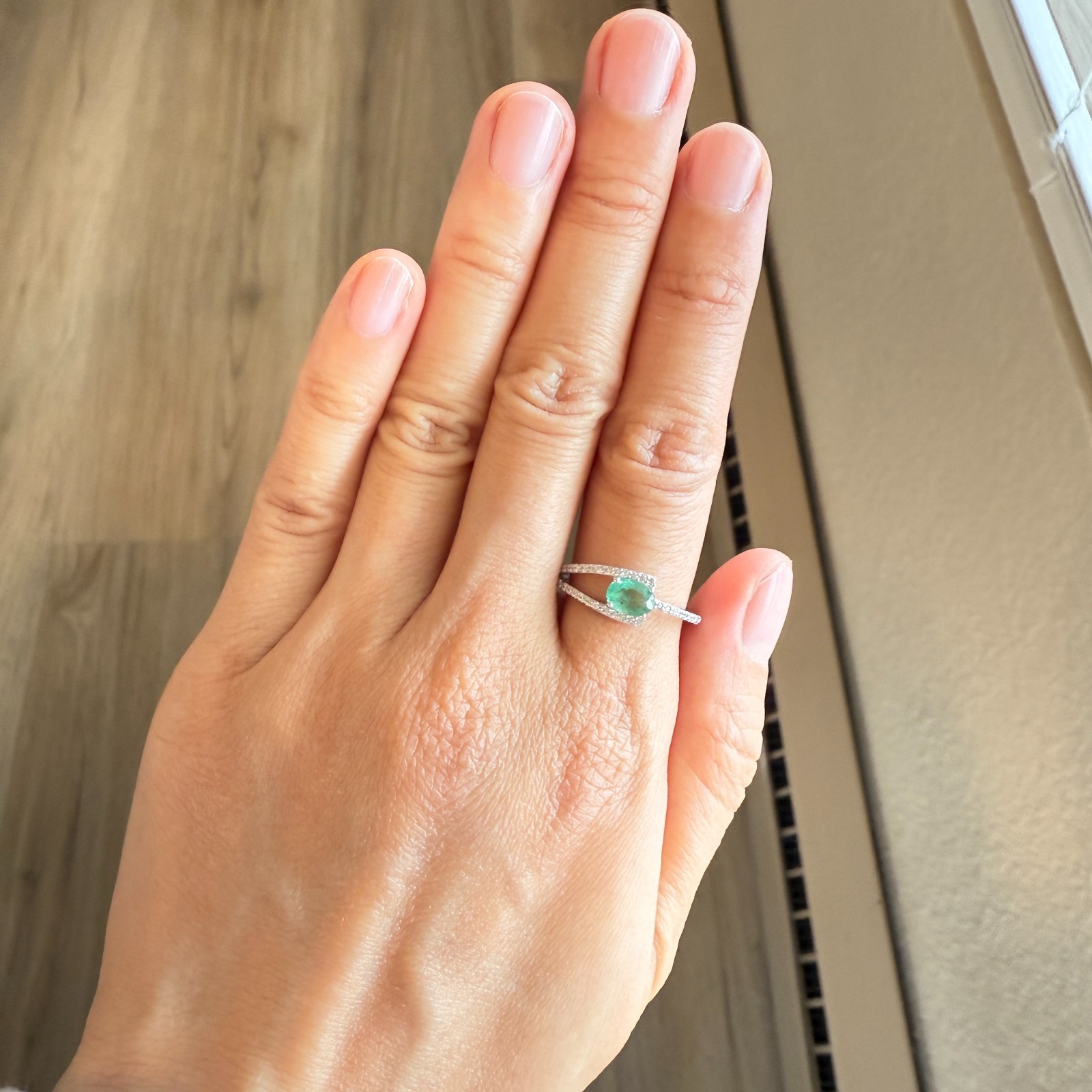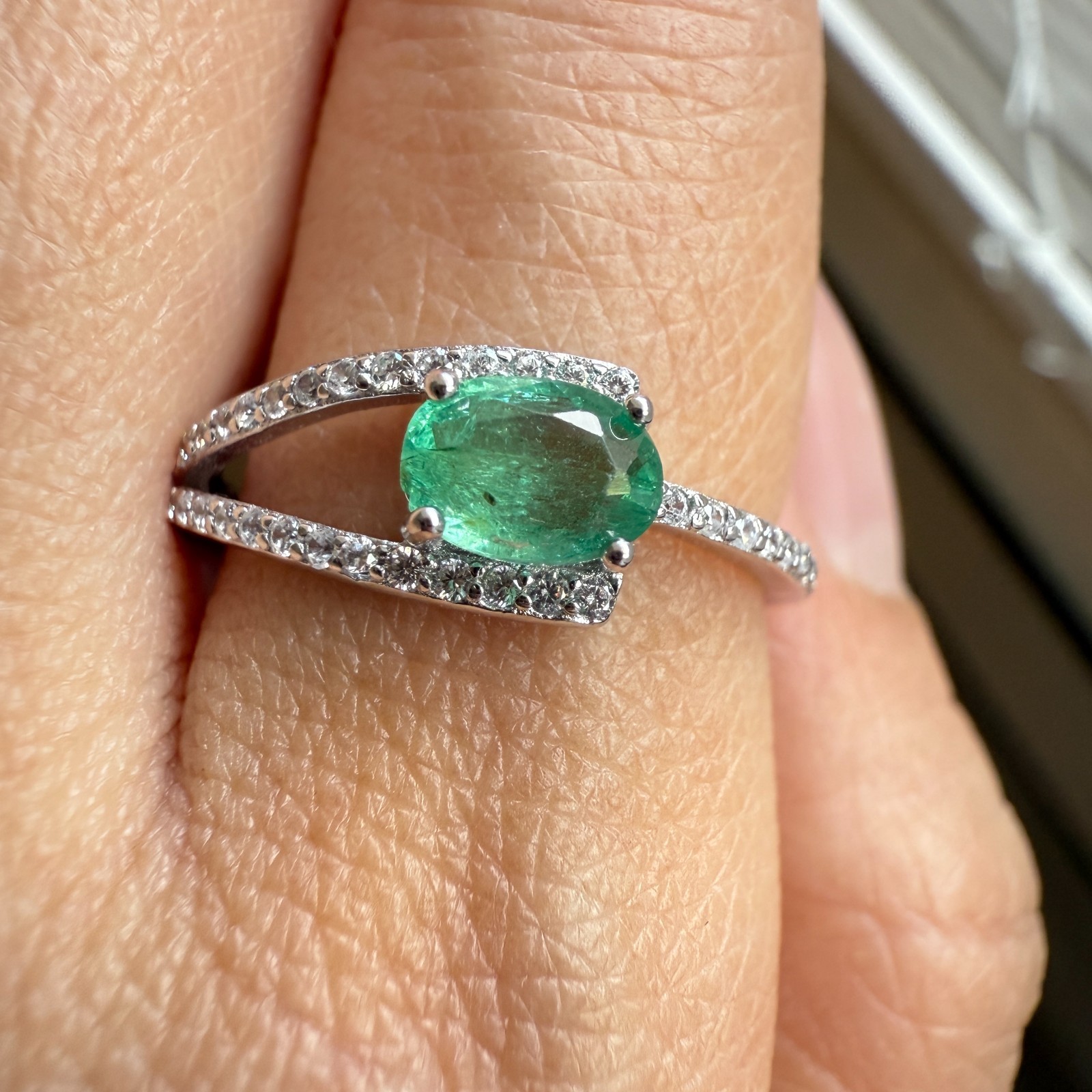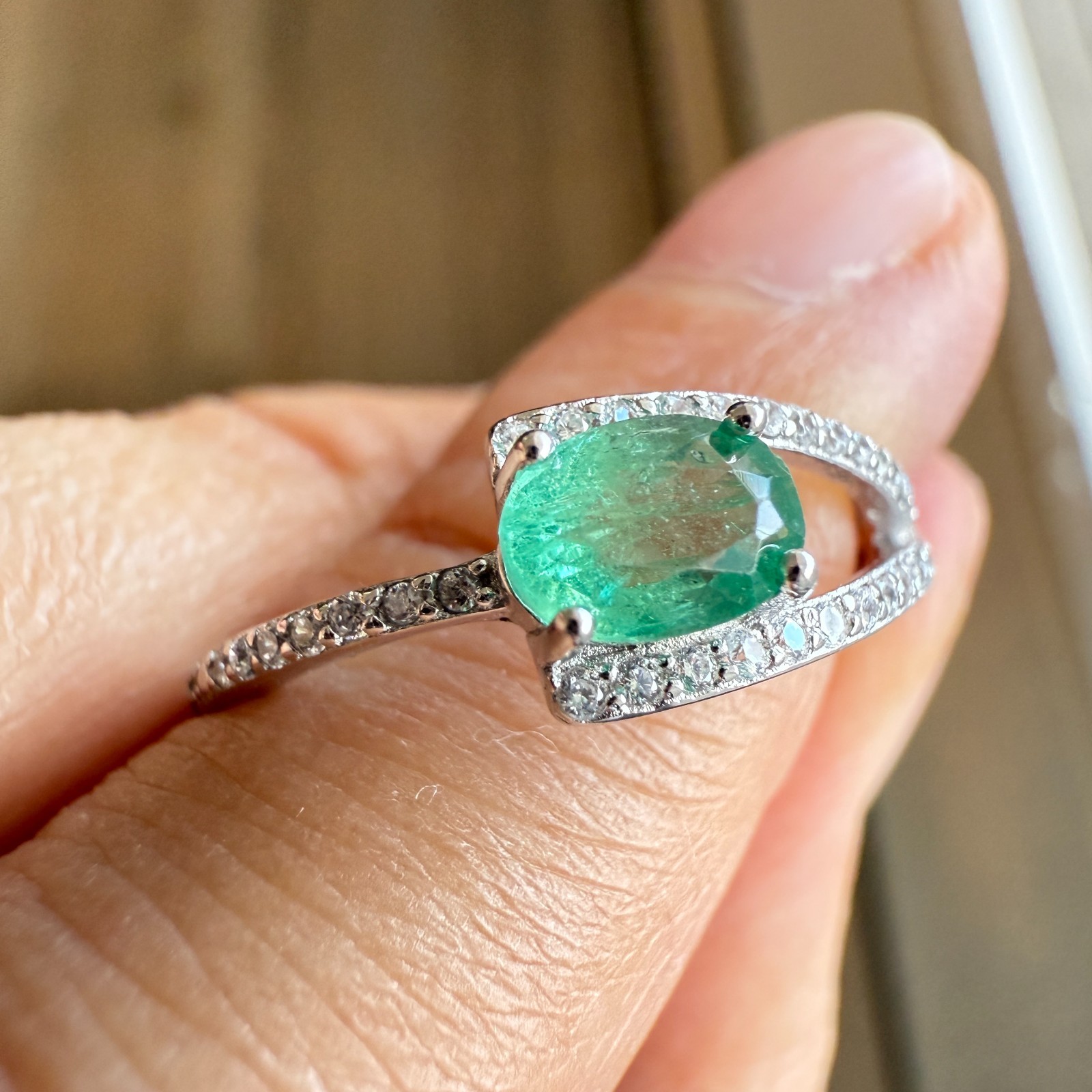 как выглядит 925 Sterling Silver Ring 6x5mm Natural Emerald Gemstone Zircon Green Jewelry фото