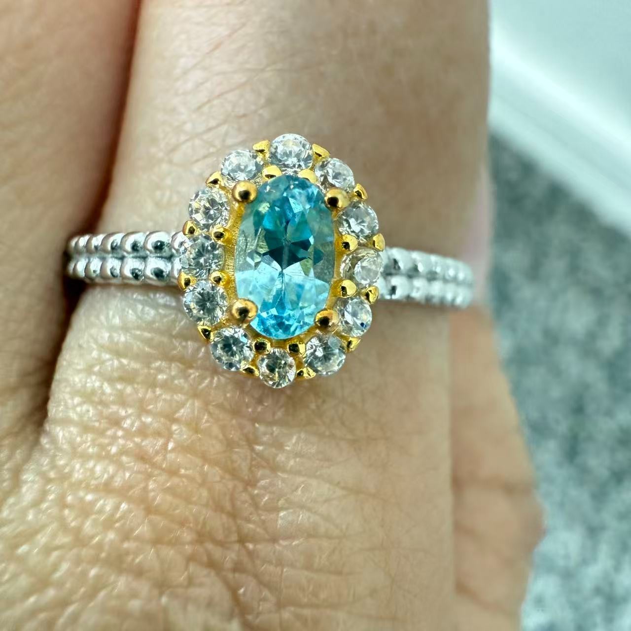 как выглядит 925 Sterling Silver Ring Blue 5x3mm Natural Topaz Gemstone Zircon Jewelry NEW фото