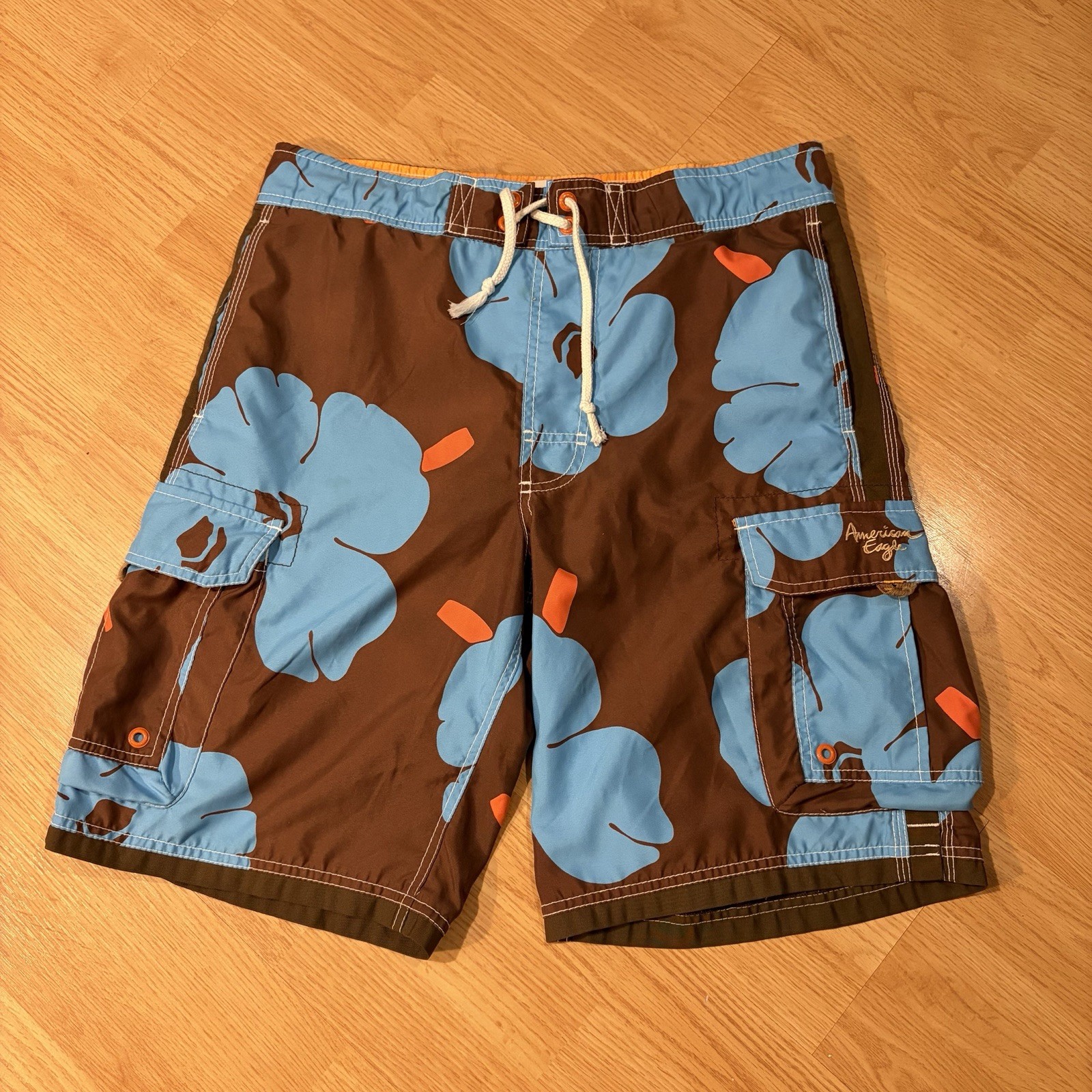 Men s Y2k American Eagle Brown And Blue Floral Hawaiian Board Shorts Size M Surf