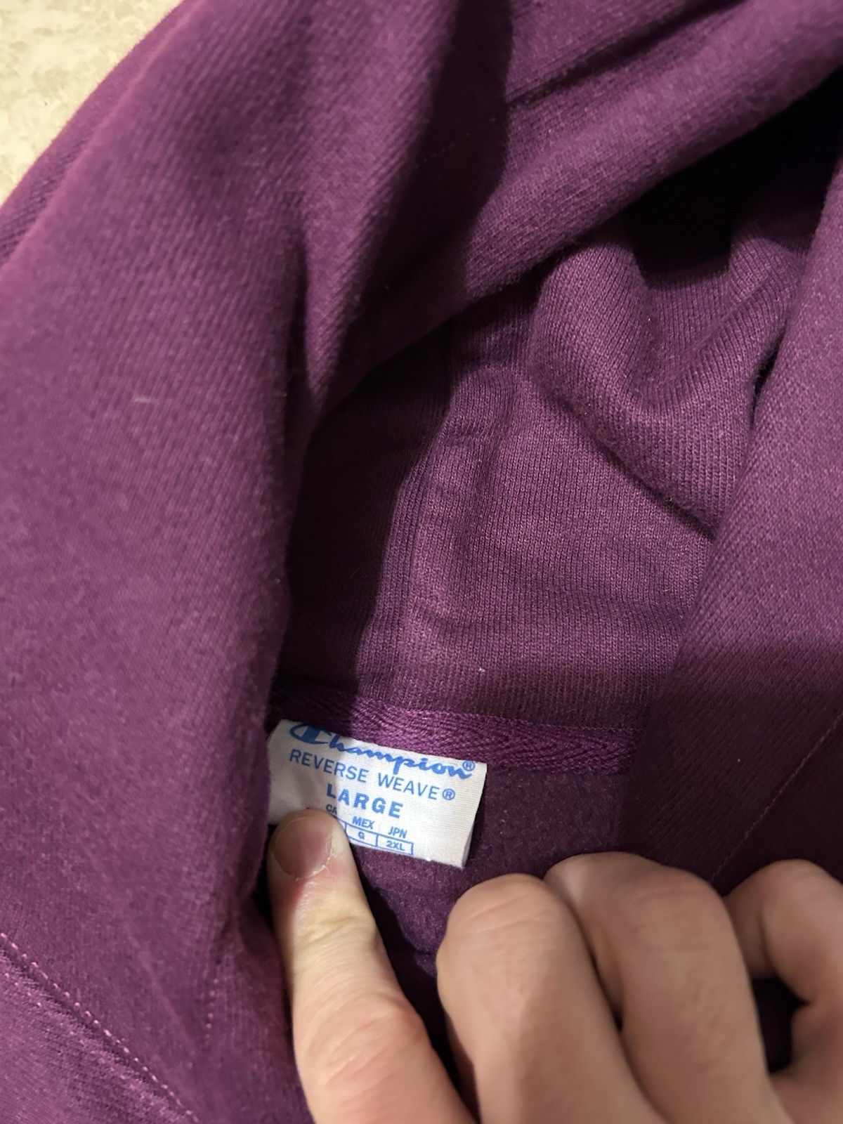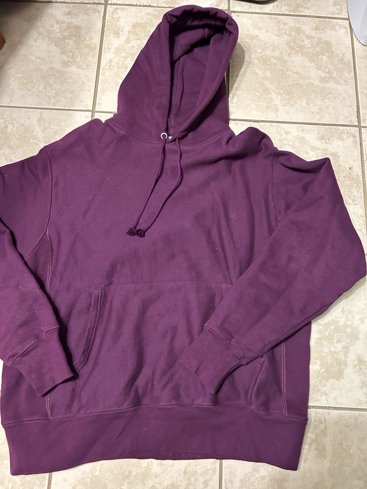 Champion Hoodie Mens Large Plum Reverse Weave Pullover Fleece C Logo Sleeve
