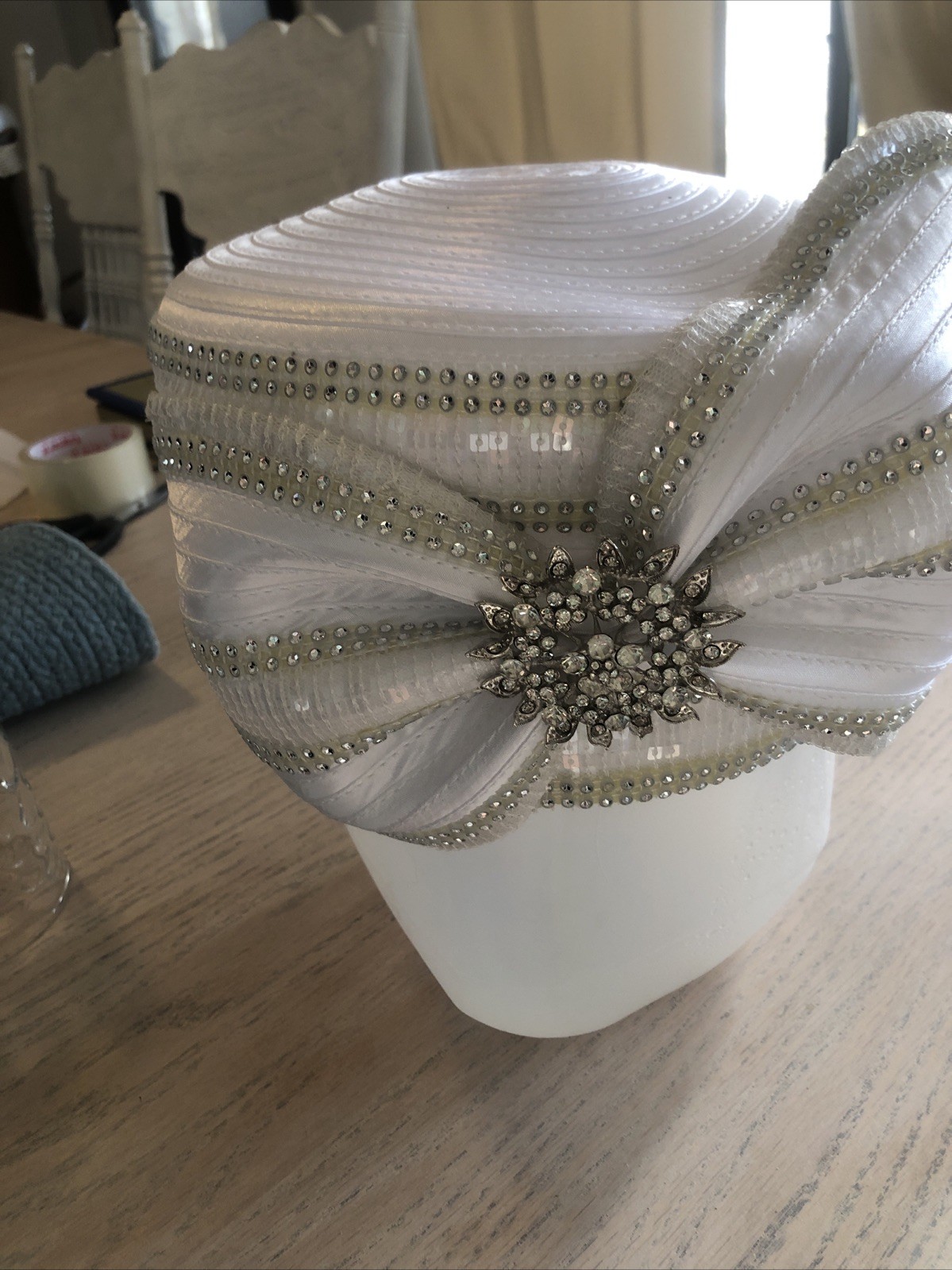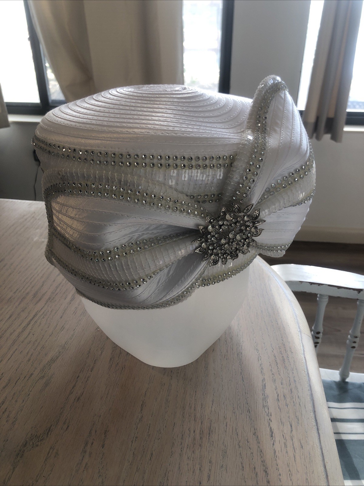 Woman's White Jeweled Church Wedding Hat Kentucky Derby Fromal Events. Easter
