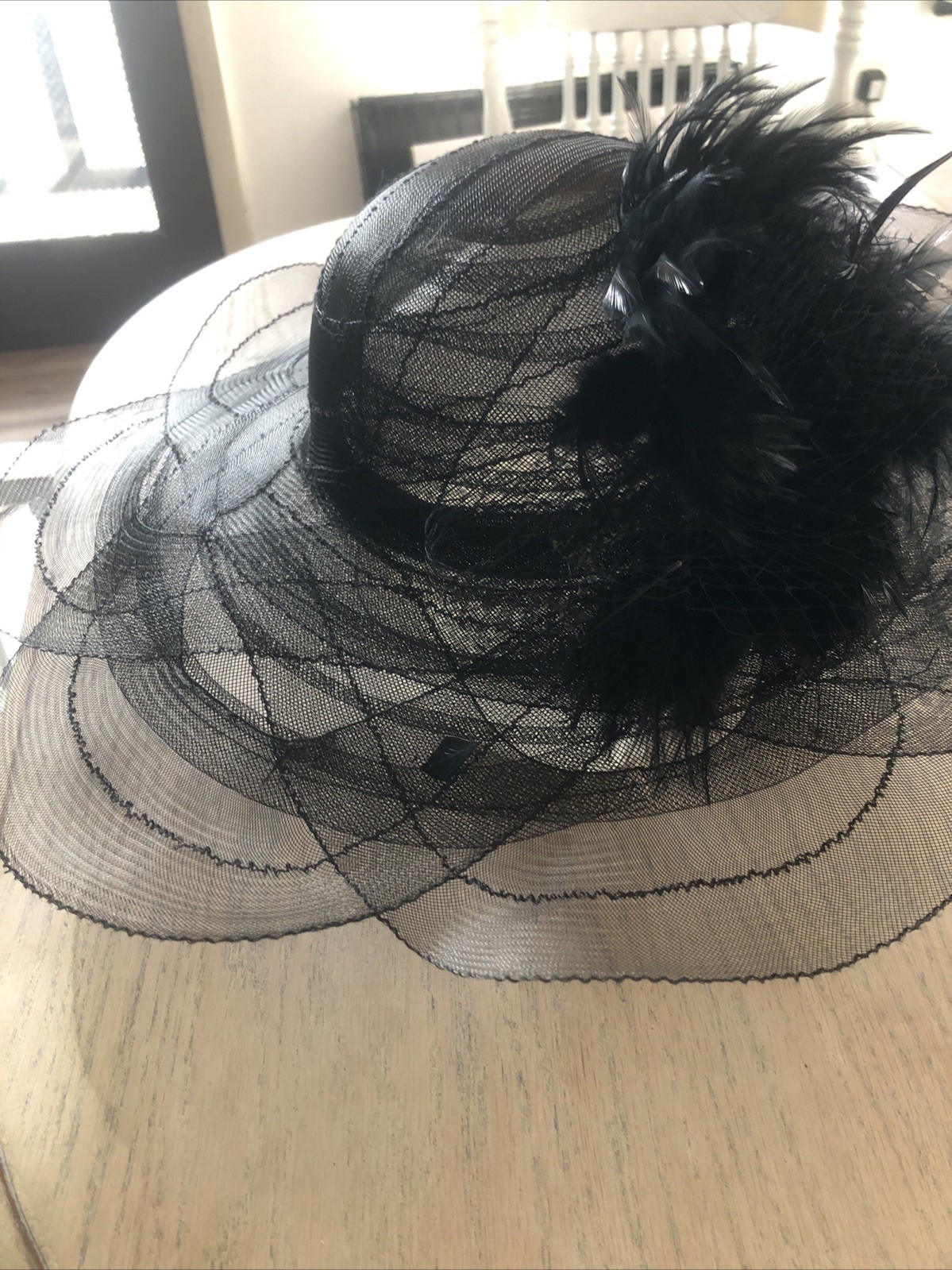 Black Wide Brim hat Kentucky Derby Wedding. Feathers