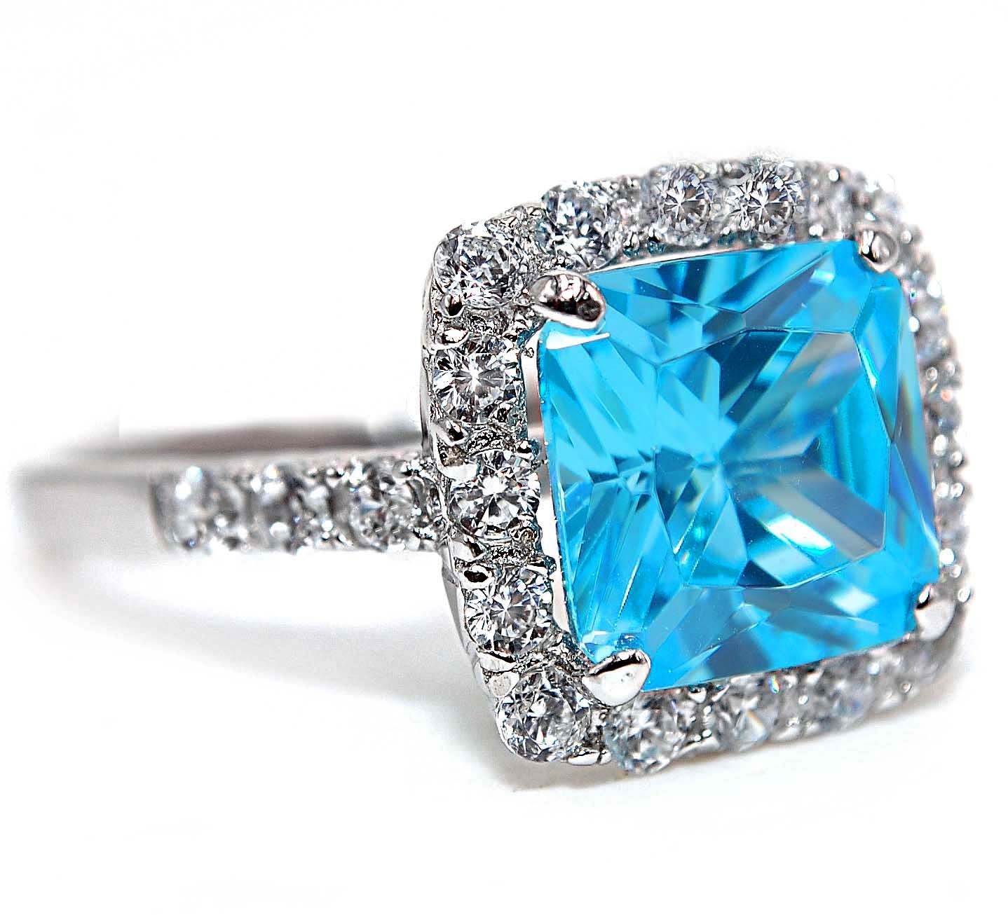 как выглядит 4CT Aquamarine White Topaz 925 Solid Sterling Silver Ring Jewelry Sz 9 фото