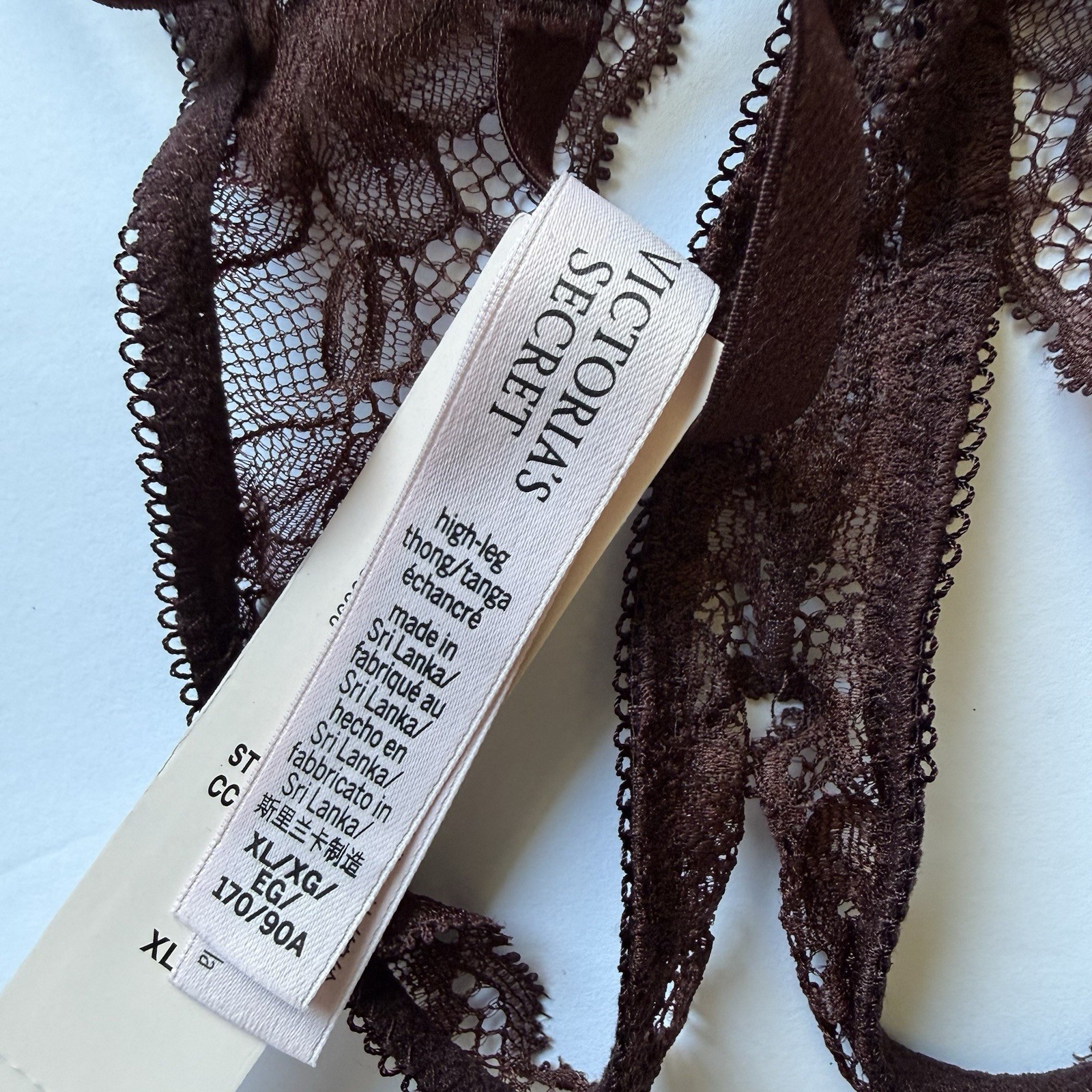 NWT Victoria s Secret XL Burgundy Lace Crotchless High Leg Thong Panty Lingerie