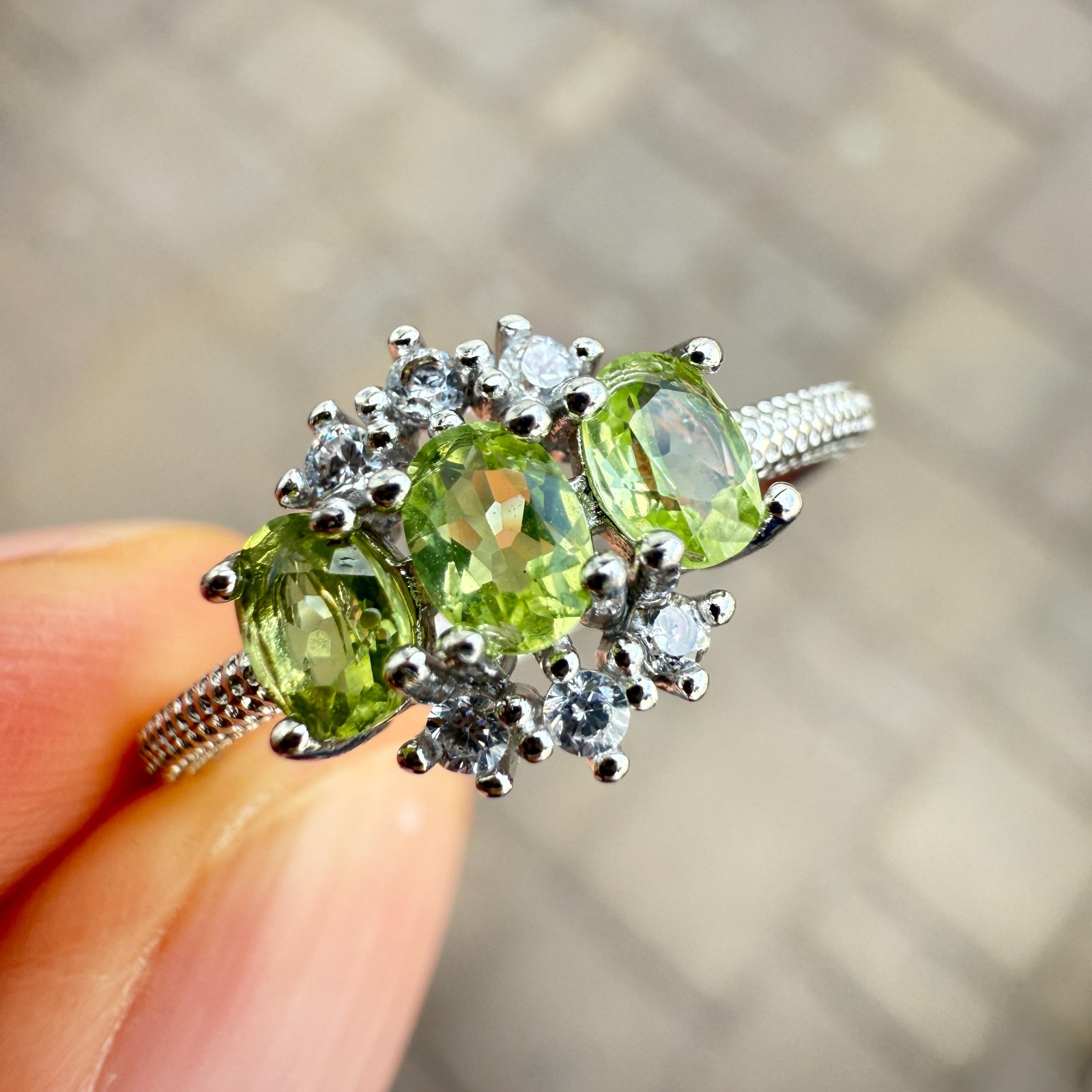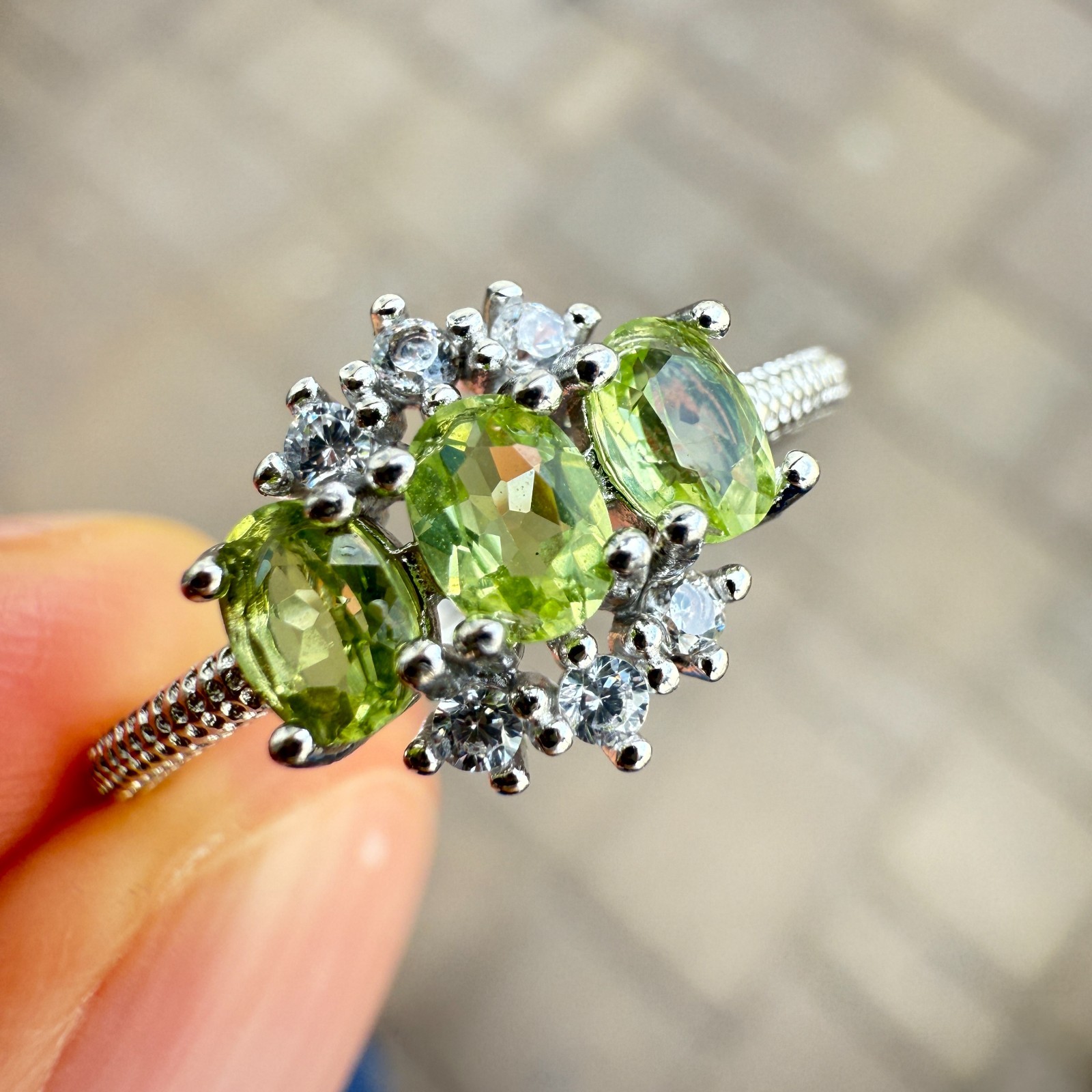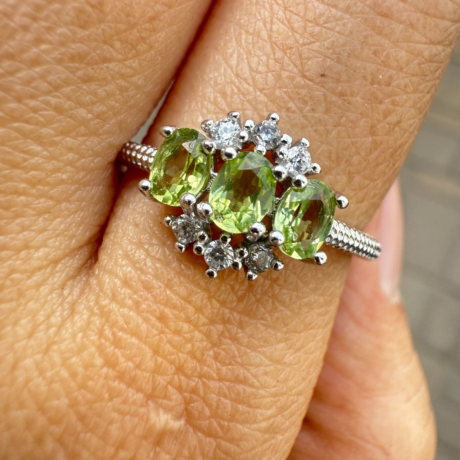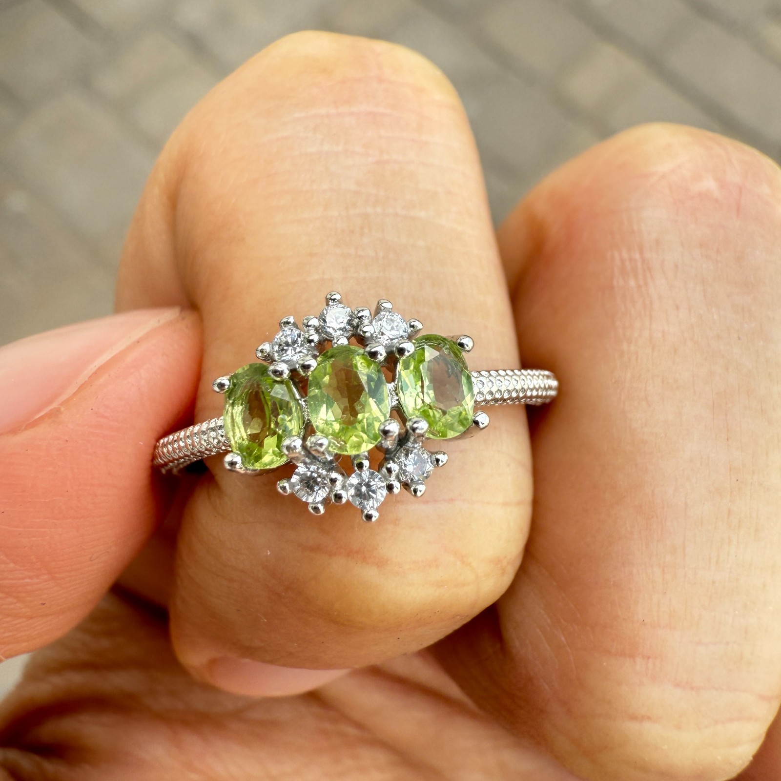 как выглядит 925 Sterling Silver Ring Oval Peridot 4x3mm Natural Gemstone Zircon Jewelry Cute фото