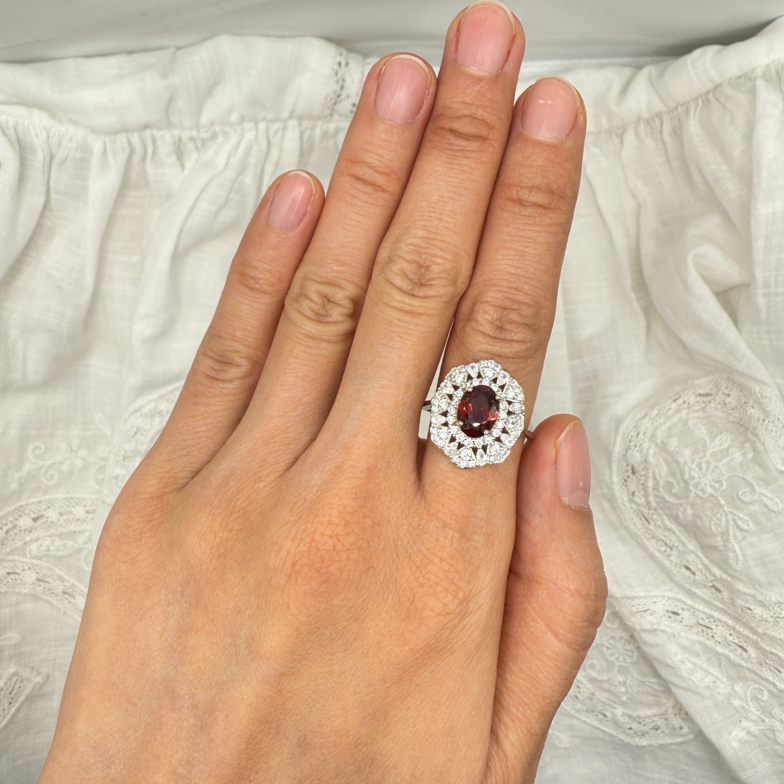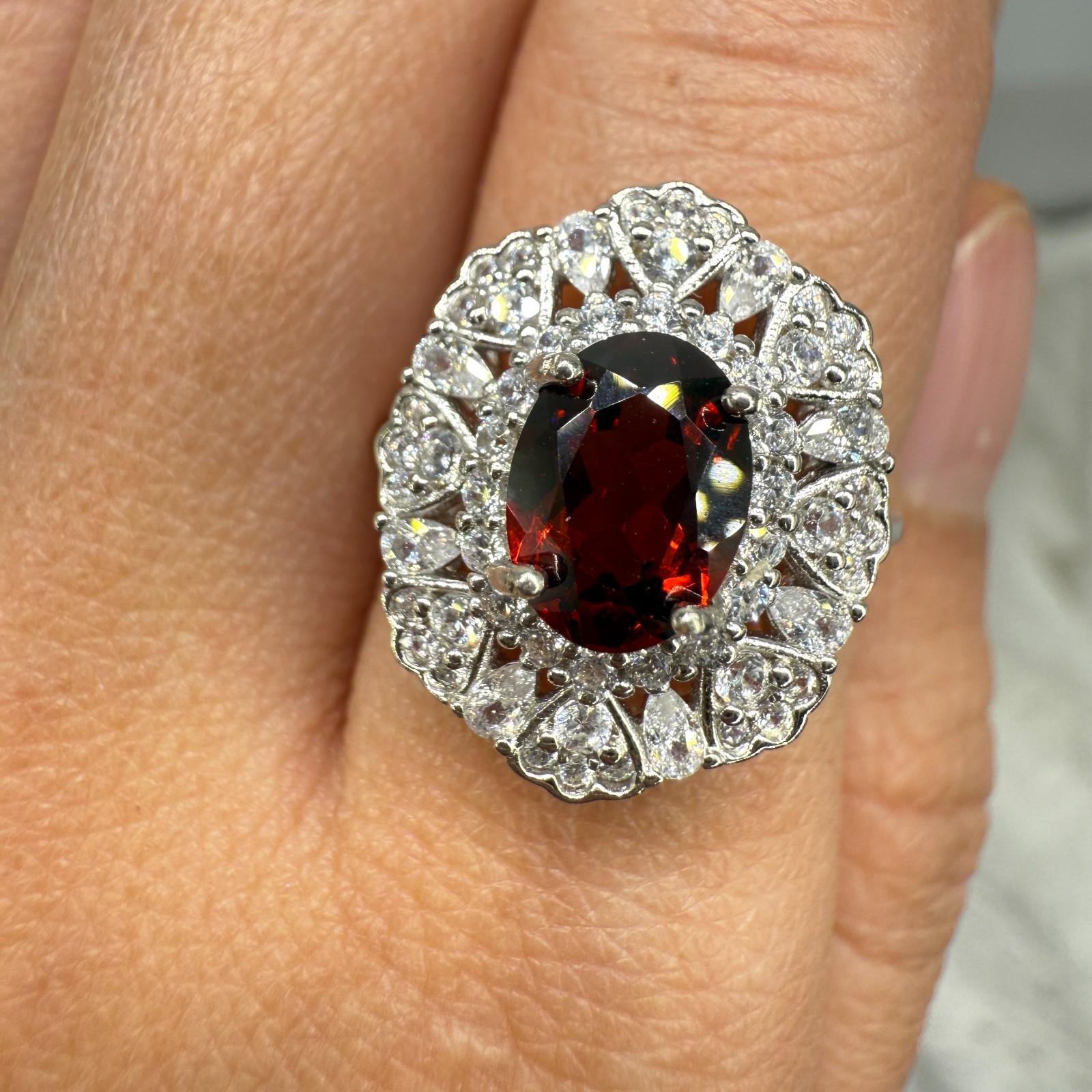 как выглядит 925 Sterling Silver Ring 8x6mm Red Natural Rhodolite Garnet Gemstone Zircon Gift фото