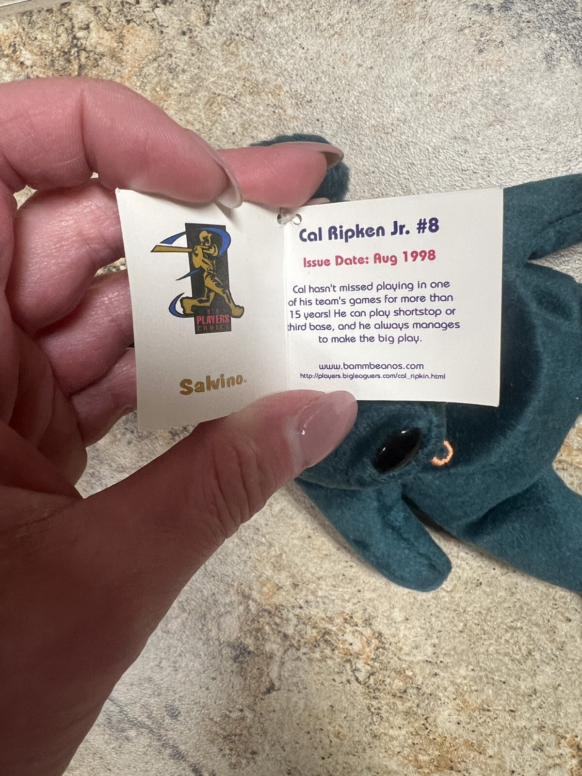 • 1998 Salvino's Bamm Beano's Cal Ripken Jr. Collectible 8.5" Plush Teddy Bear NEW