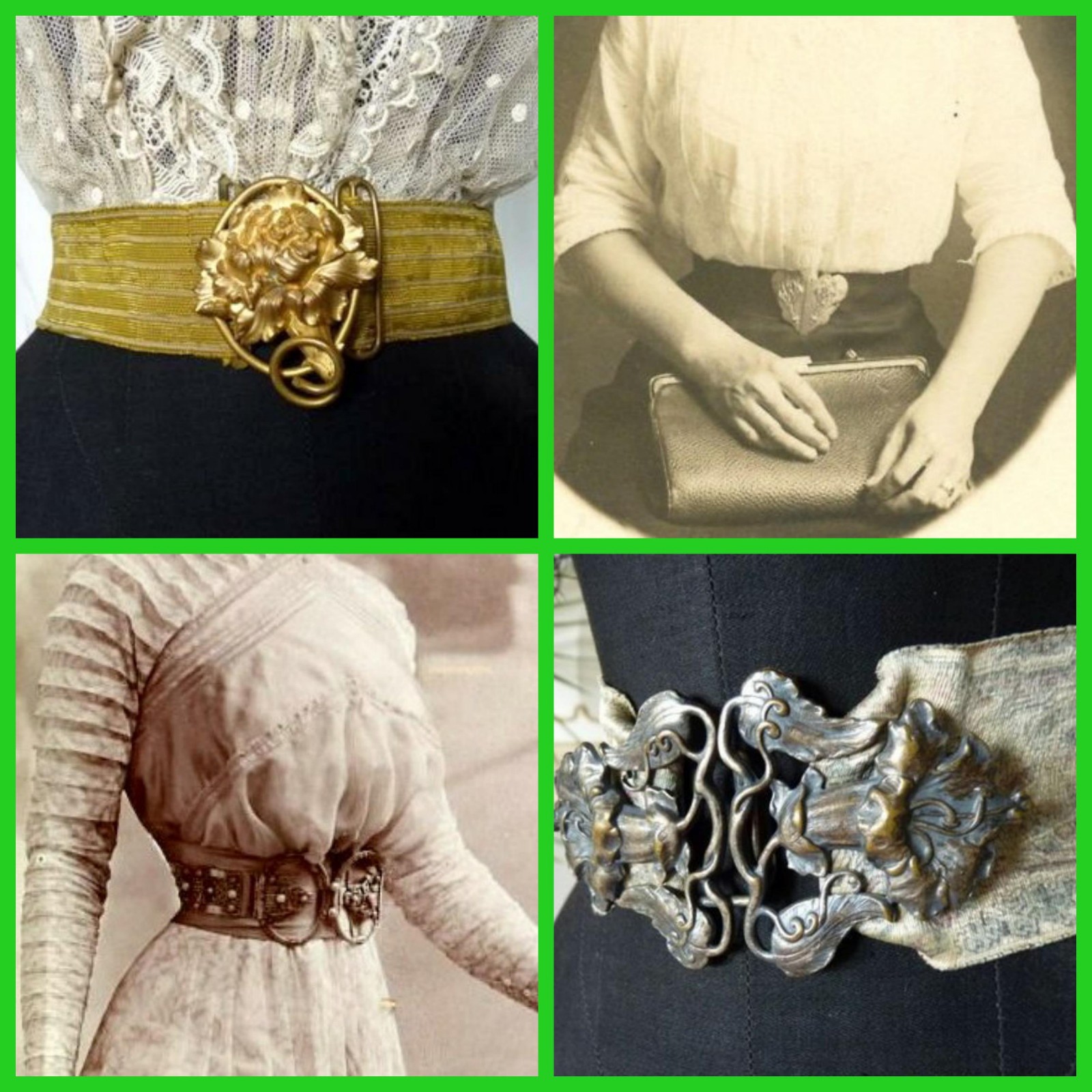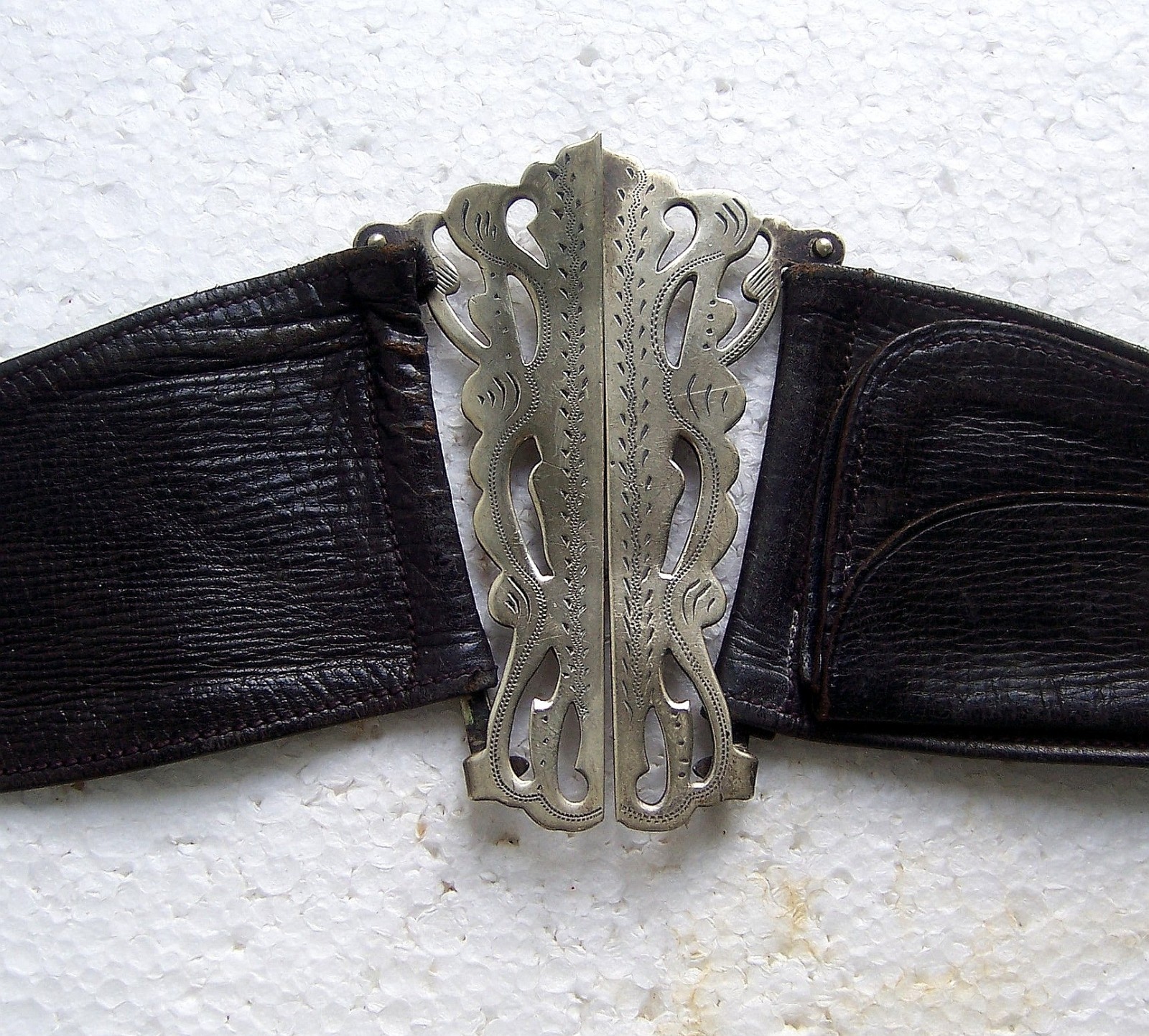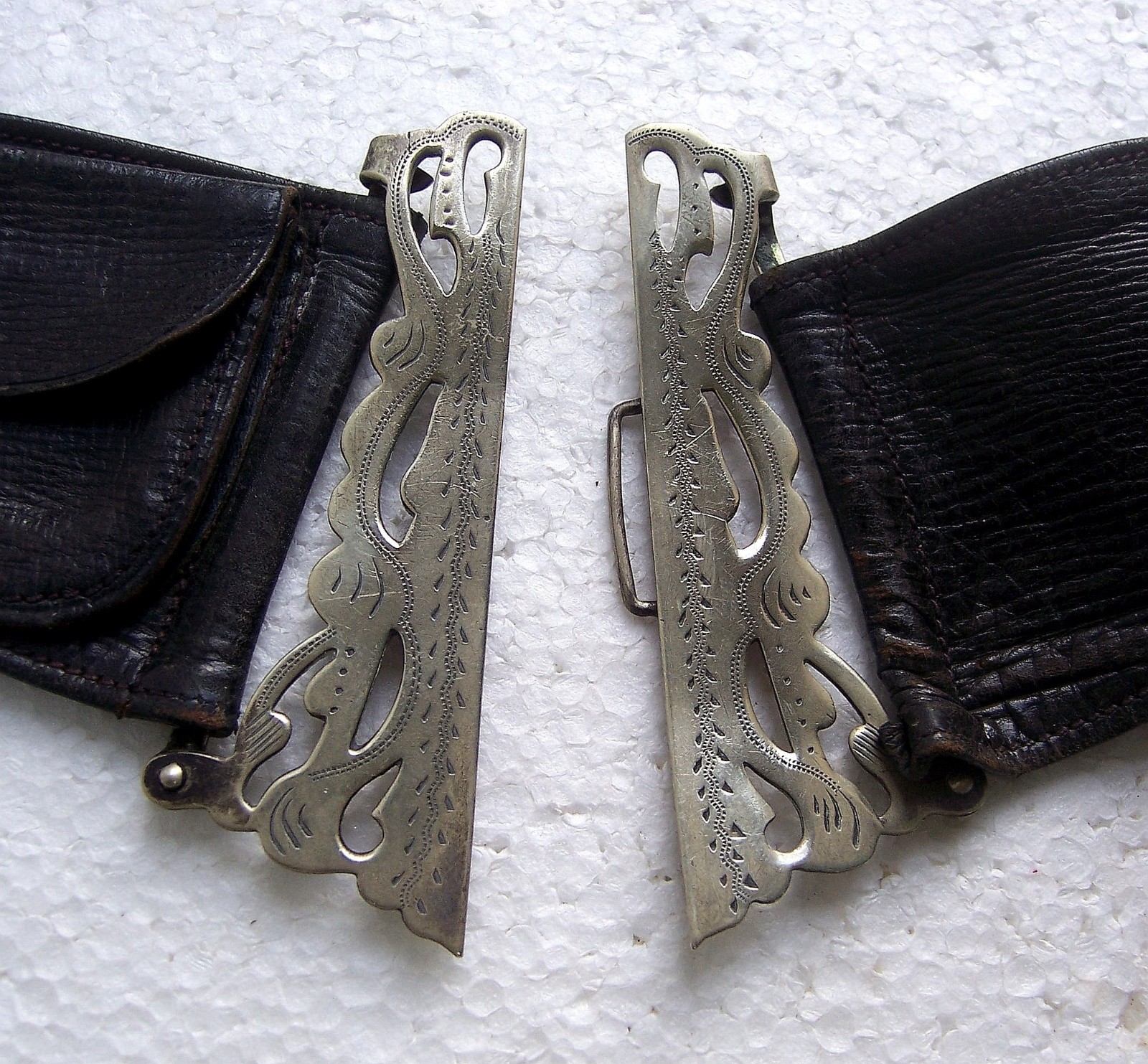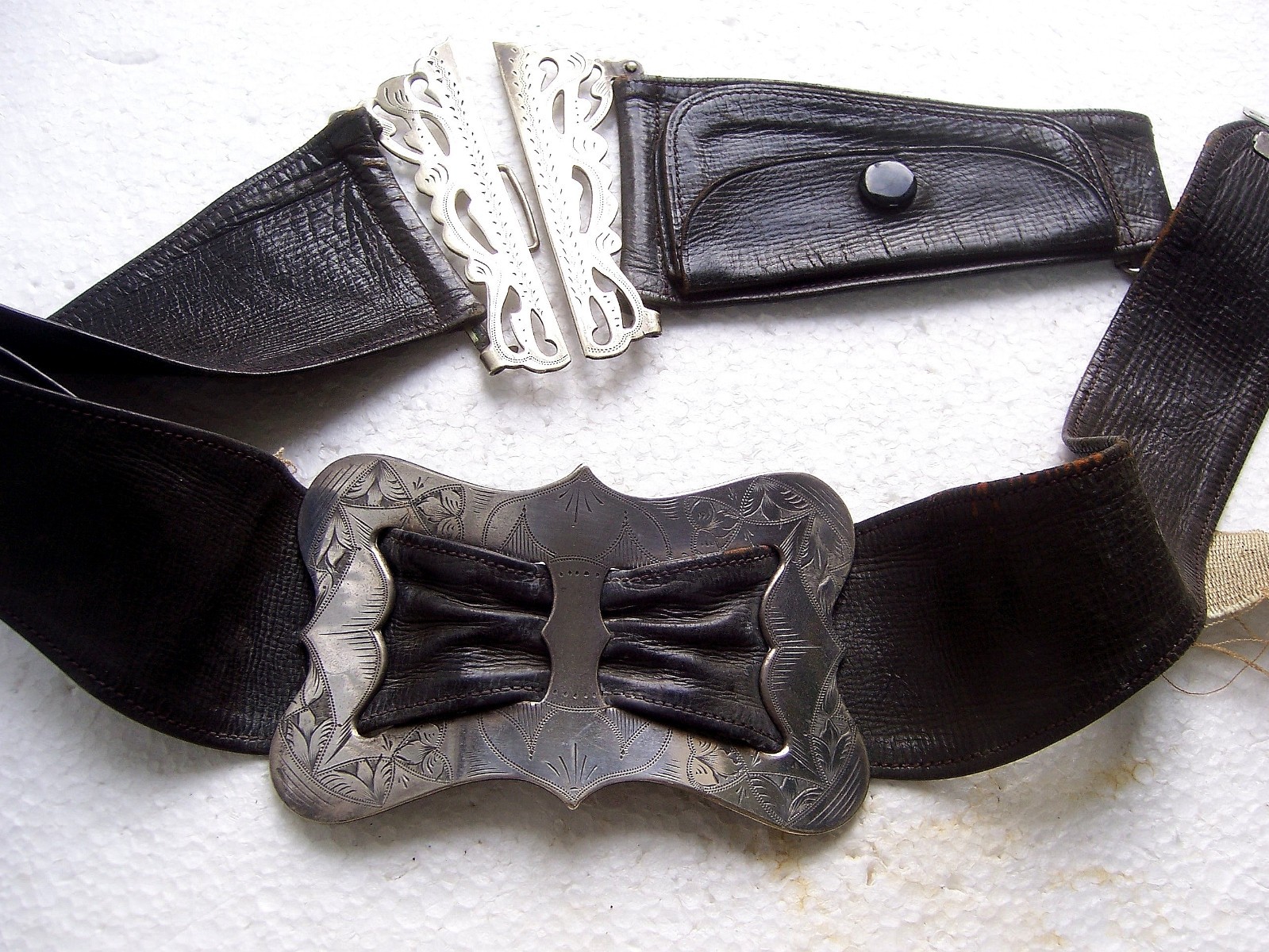 Art Nouveau period brass belt with matched silvertone buckles