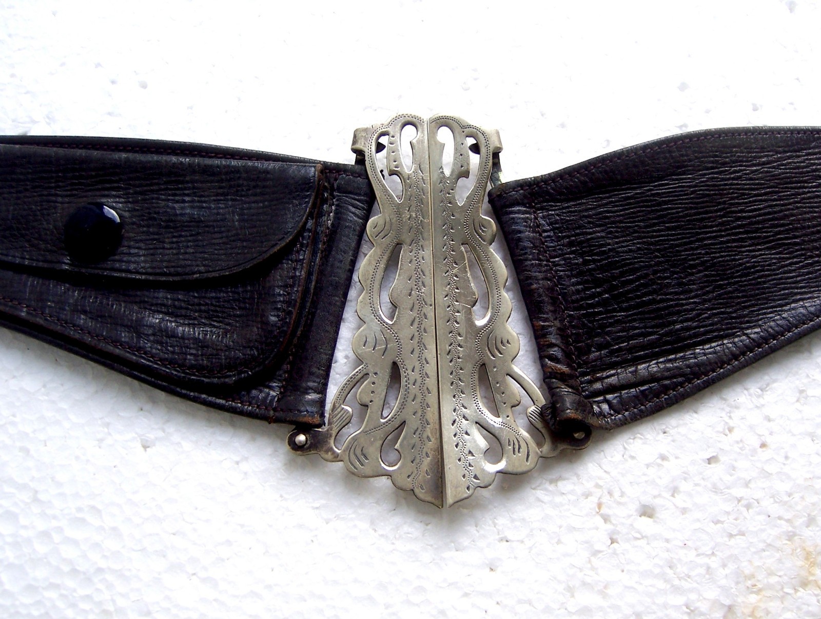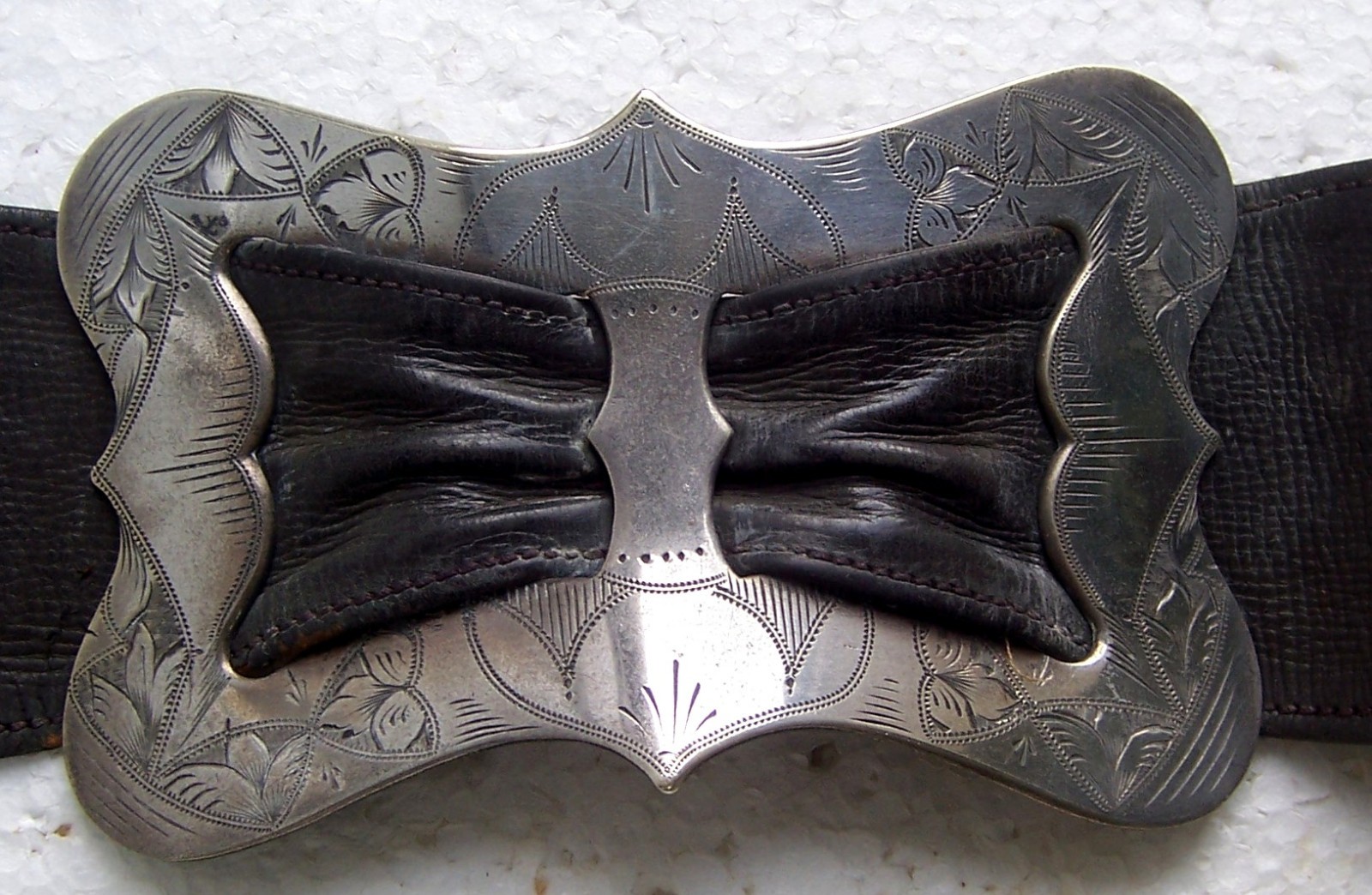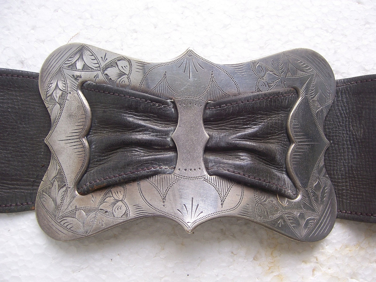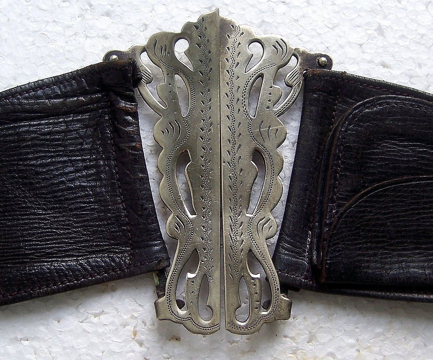 Art Nouveau period brass belt with matched silvertone buckles