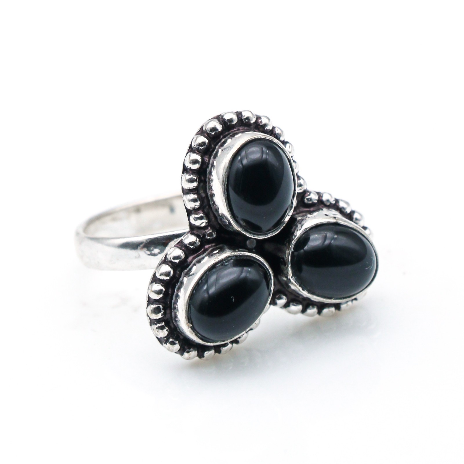 Genuine Black Onyx Ring for Women 925 Sterling Silver Statement Ring