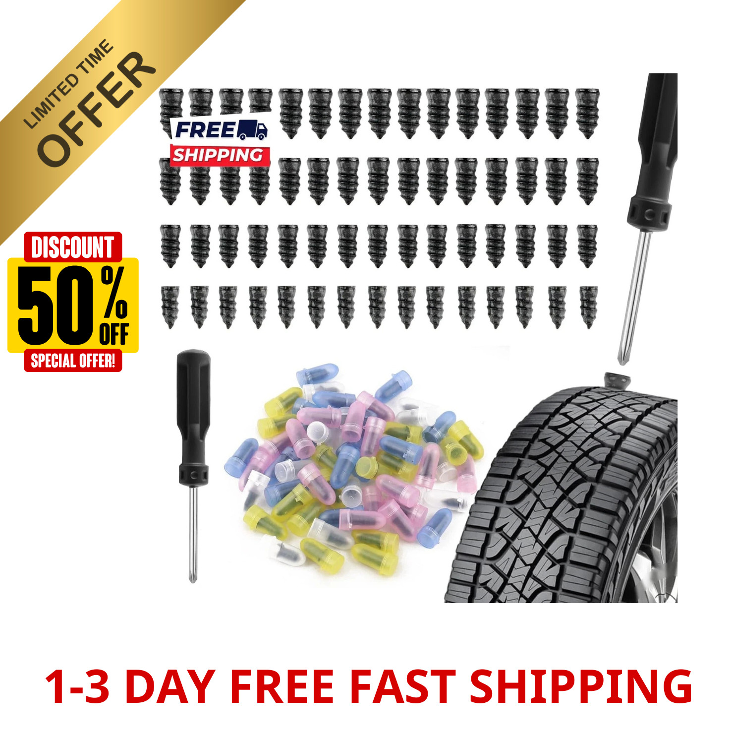 как выглядит 2026 Upgraded 60PCS Screw in Tire Plugs Self Service Tire Plugs Kit with Screwdr фото