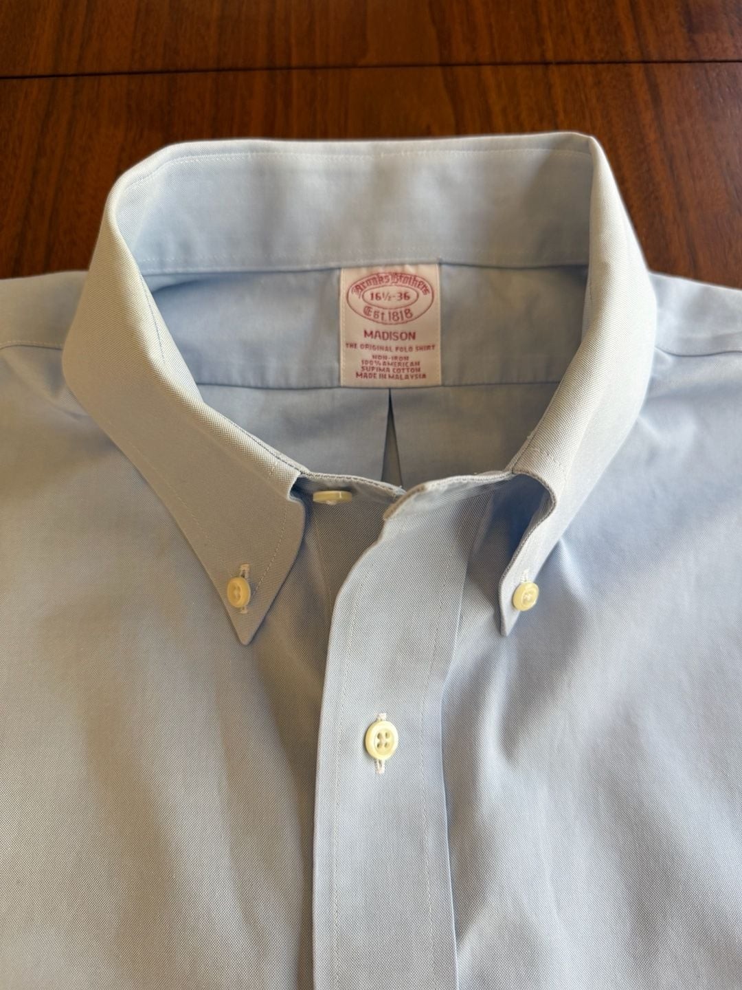 как выглядит Brooks Brothers Madison Fit Light Blue Non-Iron Supima Cotton Dress Shirt 16.5-3 фото