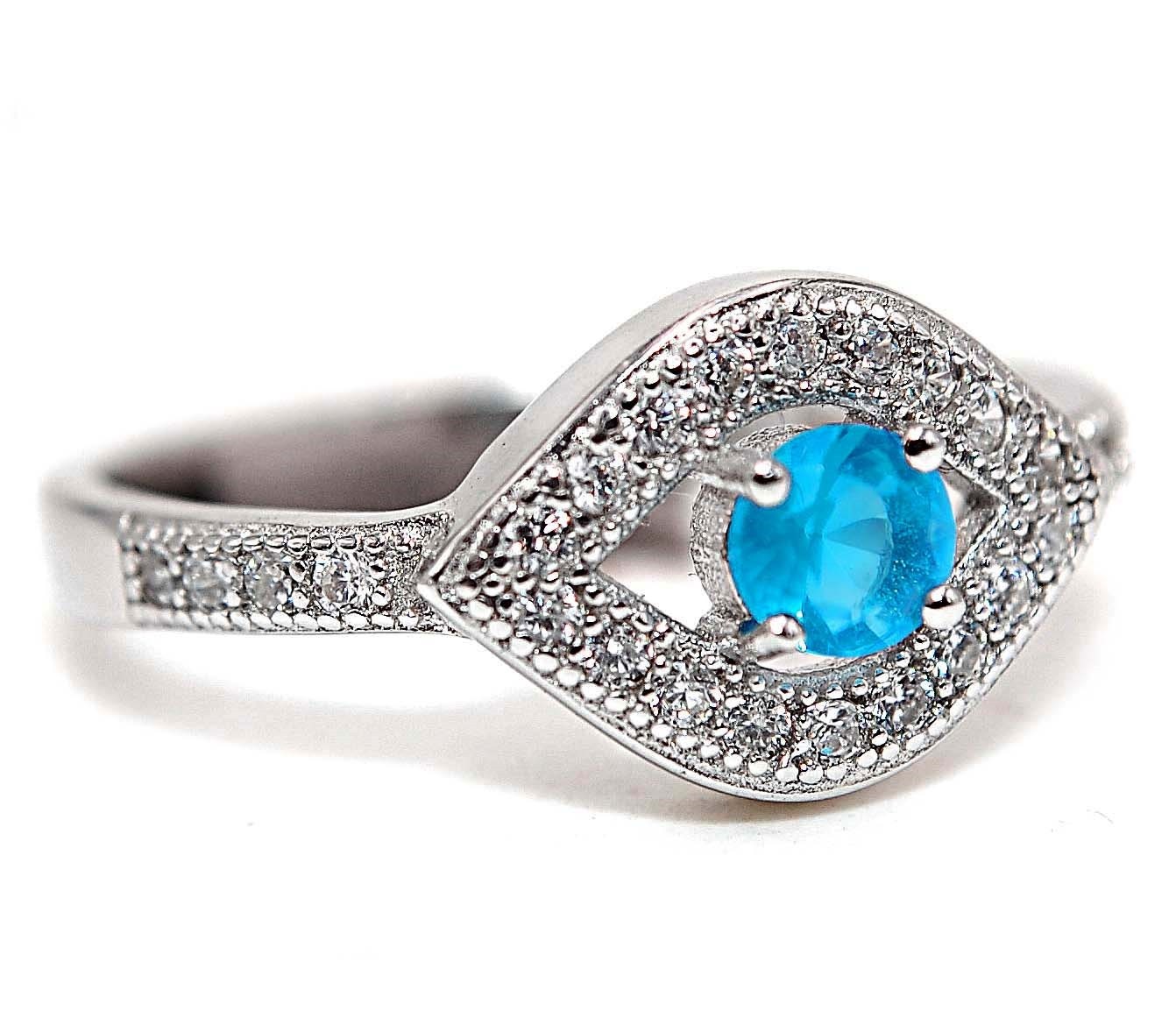как выглядит 1CT Blue Topaz White Topaz 925 Solid Sterling Silver Ring Jewelry Sz 8 фото