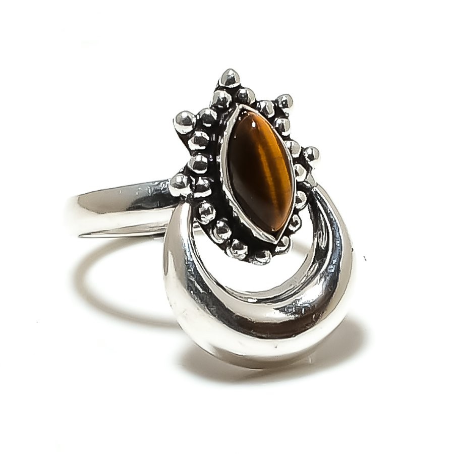 как выглядит Tiger Eye Gemstone Handmade 925 Sterling Silver Jewelry Ring 8 W055 фото