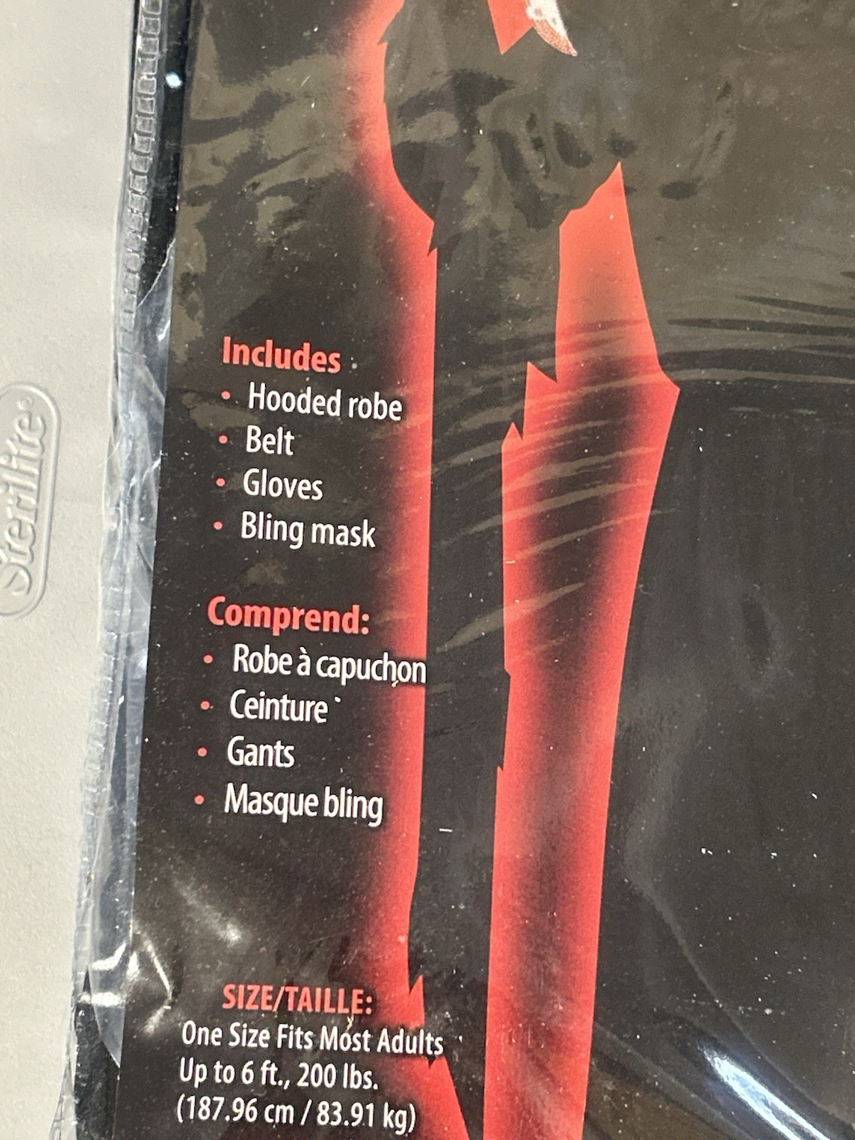 Fun World Ghost Face Scream Adult Hooded Robe Black Belt Gloves Bling Mask