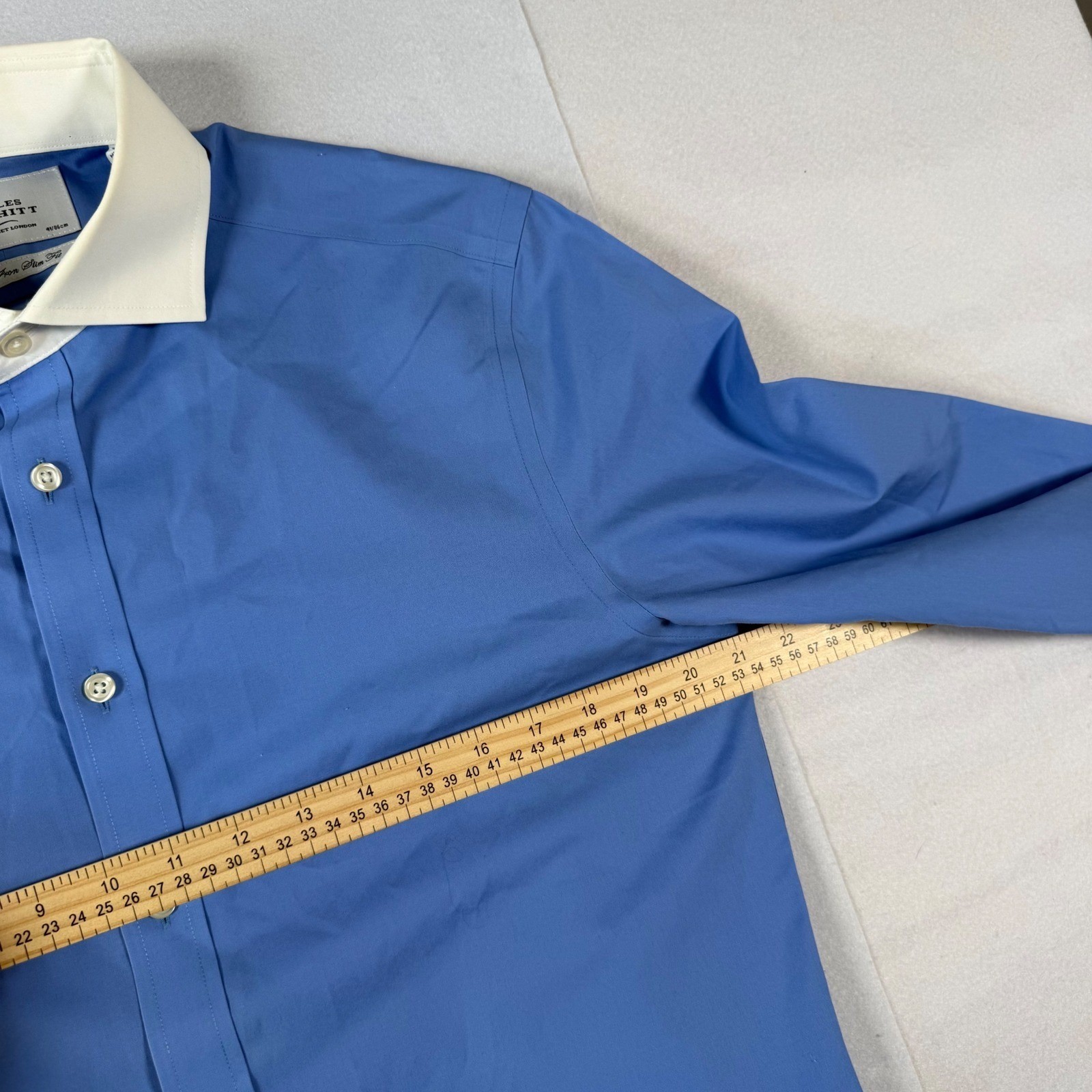 как выглядит Charles Tyrwhitt Mens Non Iron Slim Fit Dress Shirt Blue White Collar 16 34in фото