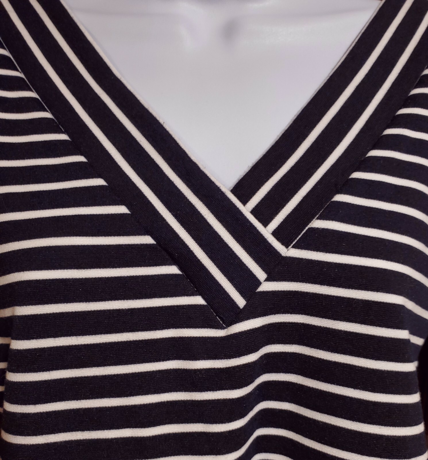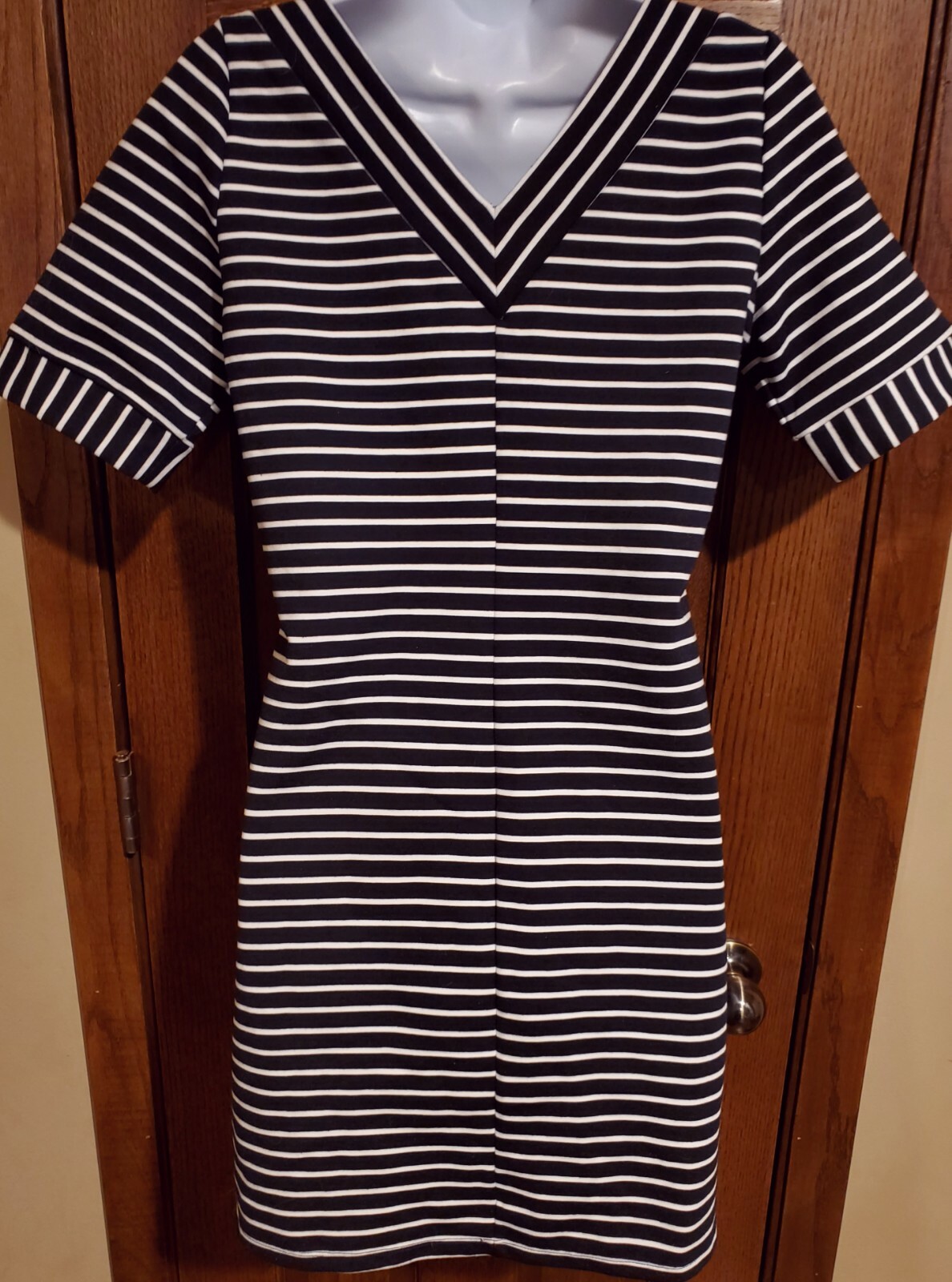 Womens Sz X-Small XS Skies Are Blue Dress Black/White Stripe Stretch Comfy EUC