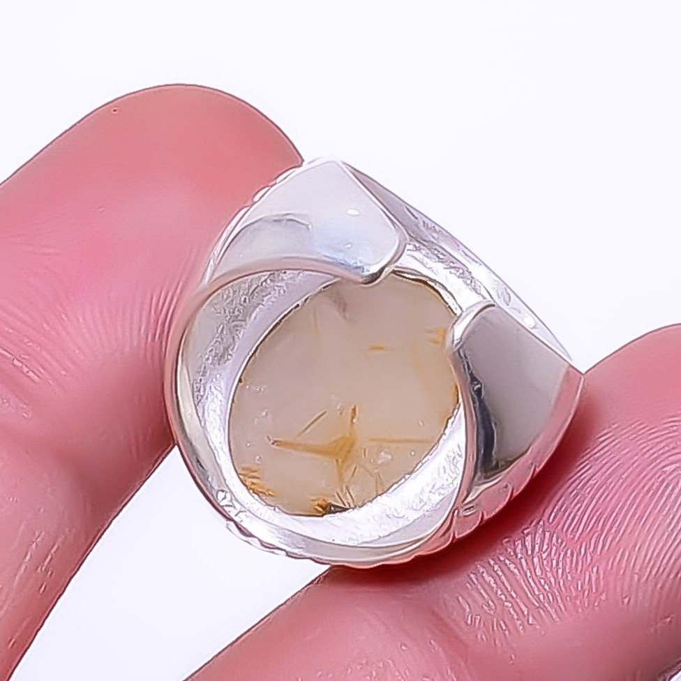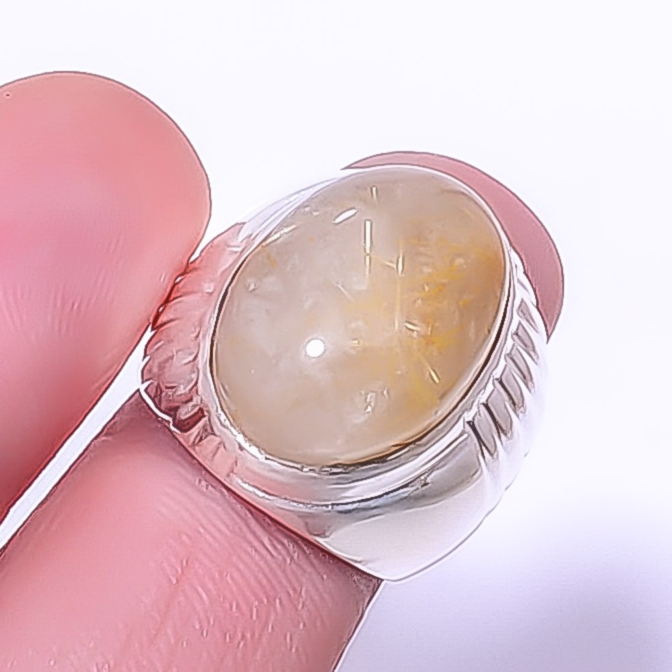 Golden Rutilated Quartz 925 Sterling Silver Ring Size Adjustable R29