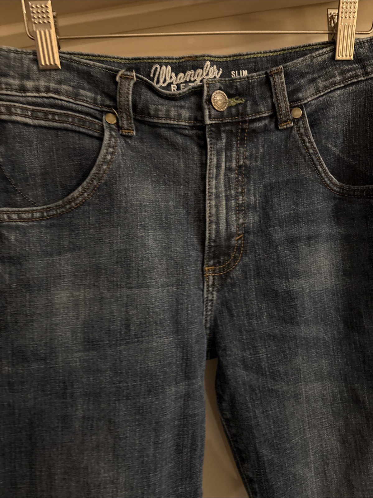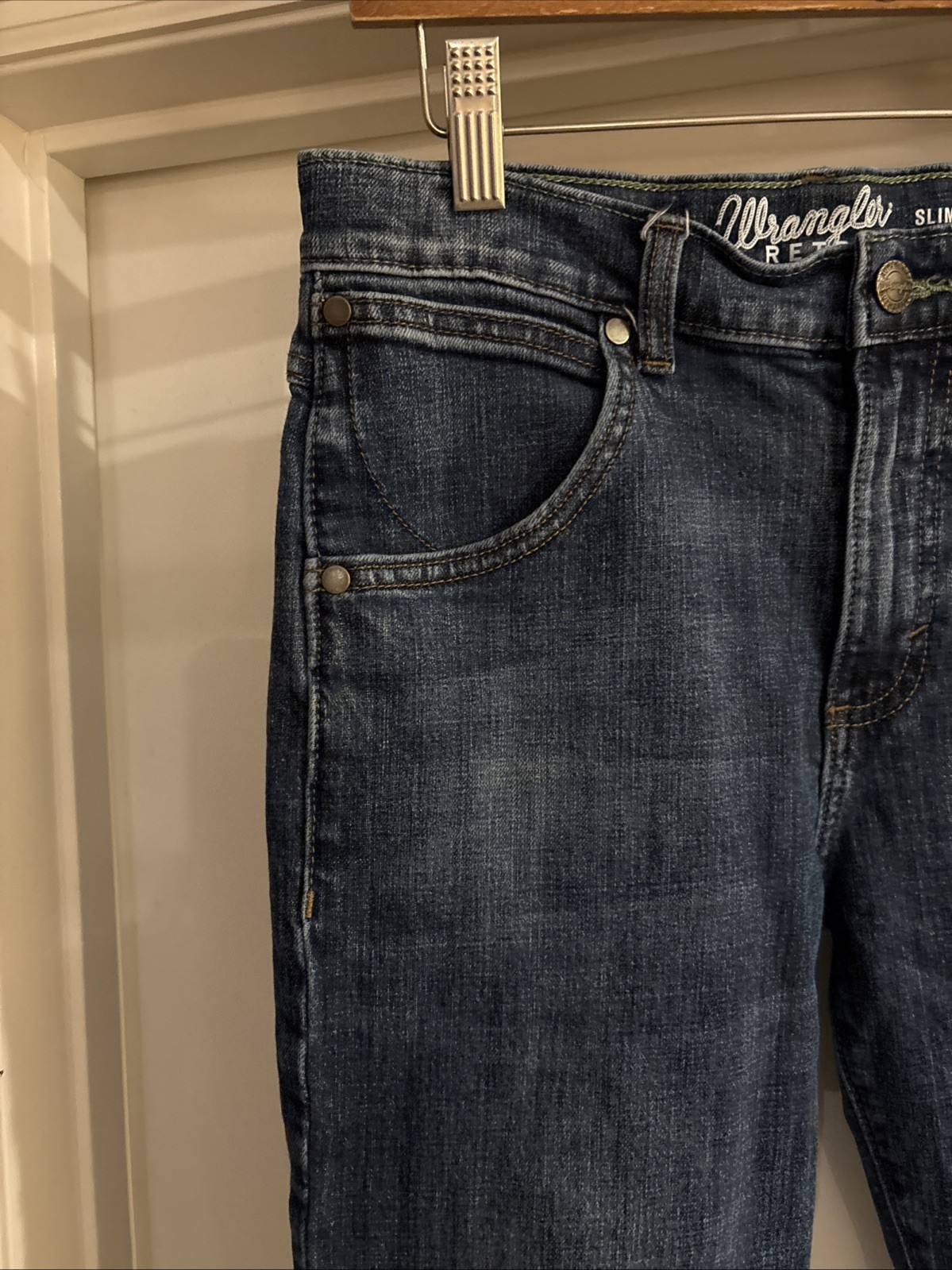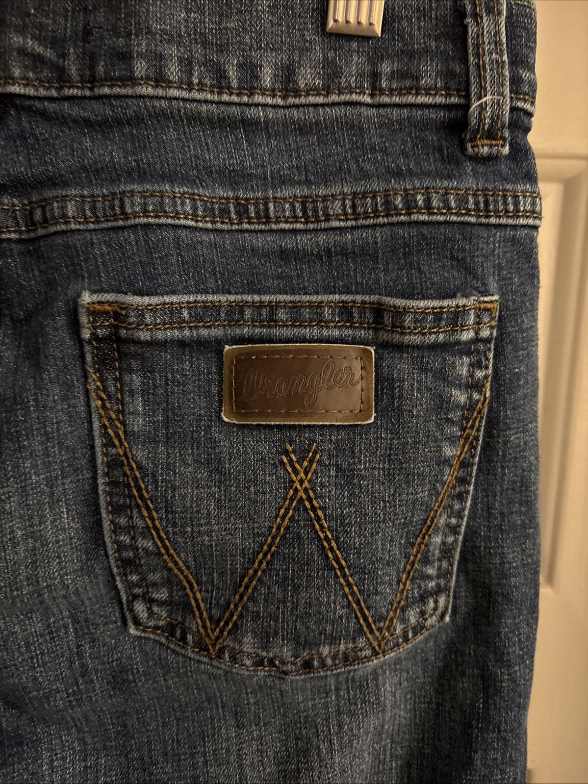 как выглядит Wrangler Retro Slim Straight Boys Jeans Blue Denim Adjustable Waist Size 16 фото