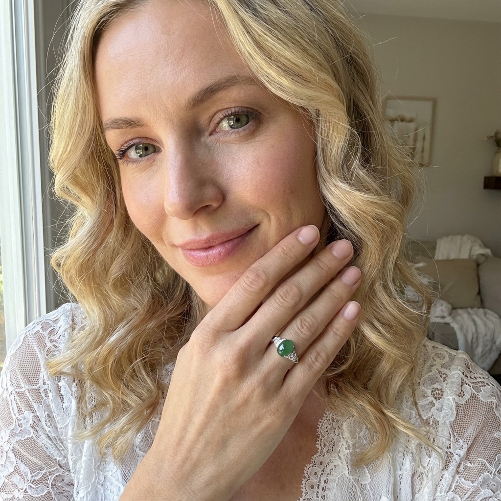 как выглядит 925 Sterling Silver Ring 9x7mm Green Natural Emerald Gemstone Zircon Women Gift фото