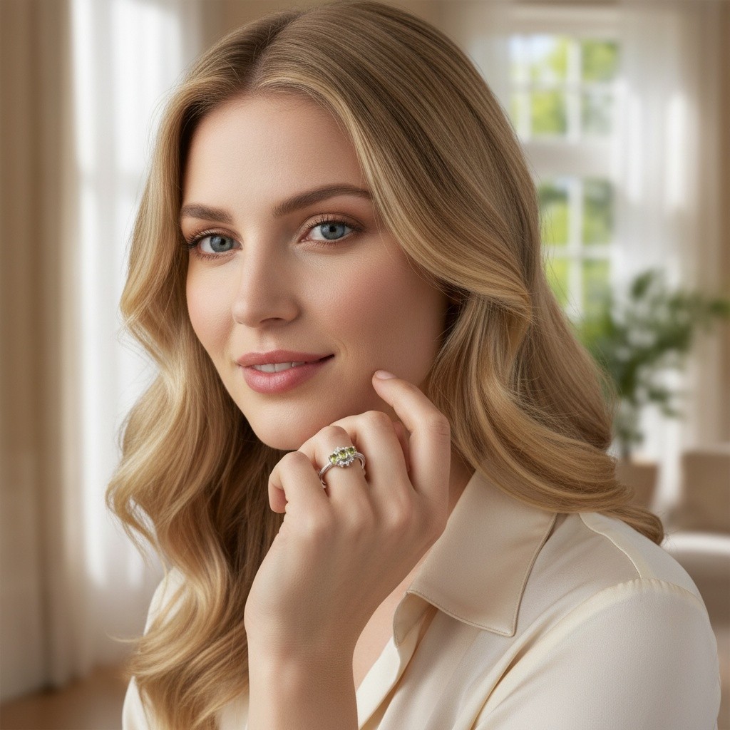 как выглядит 925 Sterling Silver Ring Oval Peridot 4x3mm Natural Gemstone Zircon Jewelry Gift фото