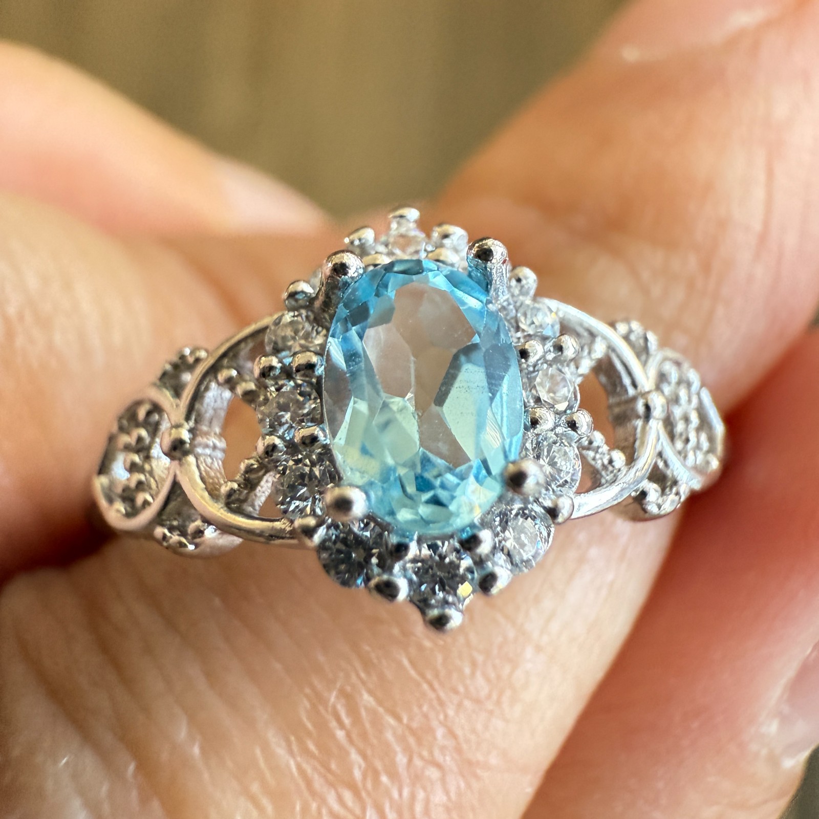 925 Sterling Silver Ring Oval Blue 6x4mm Natural Topaz Gemstone Zircon Jewelry