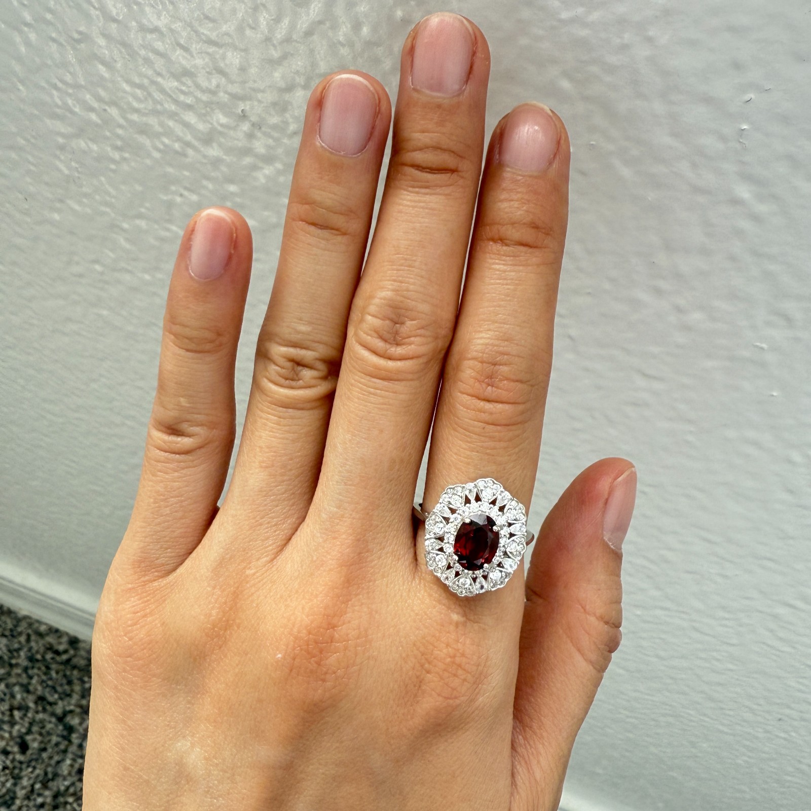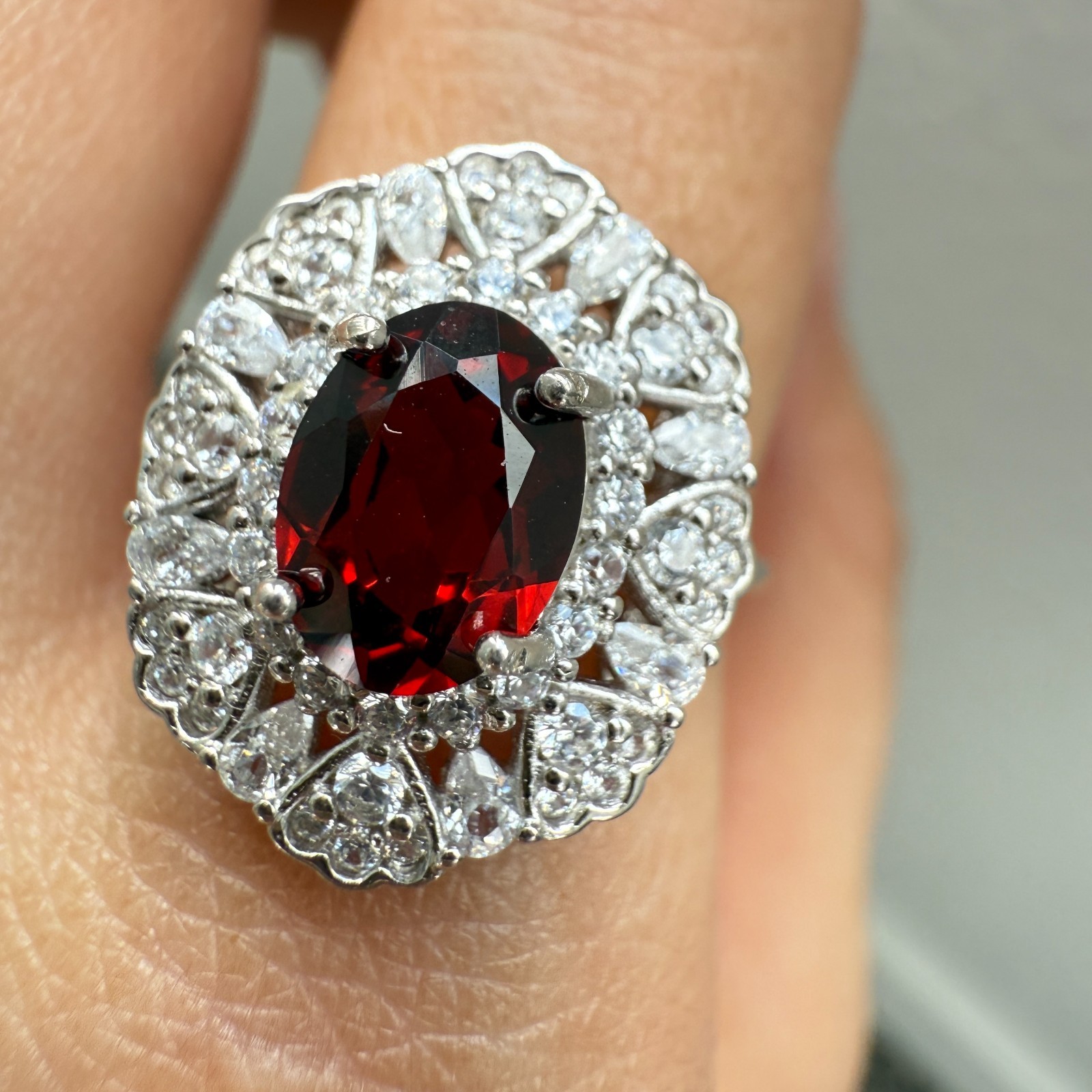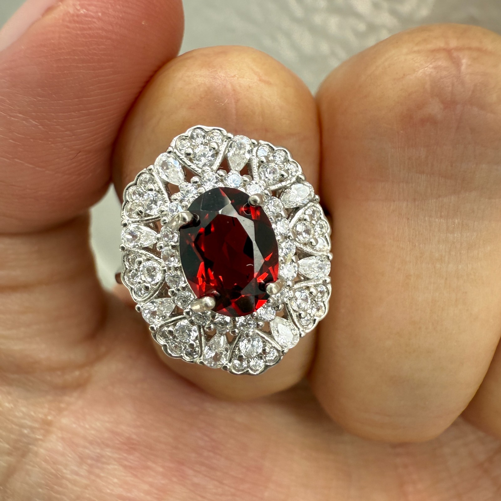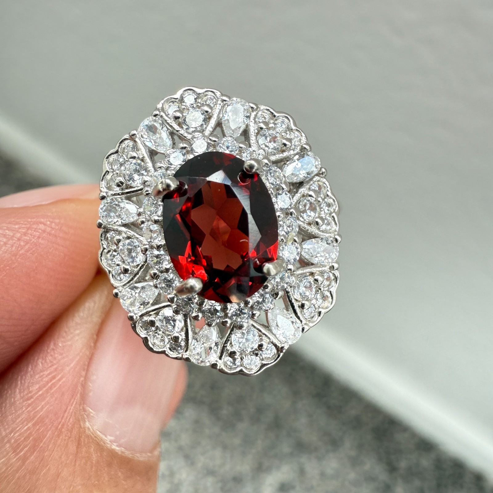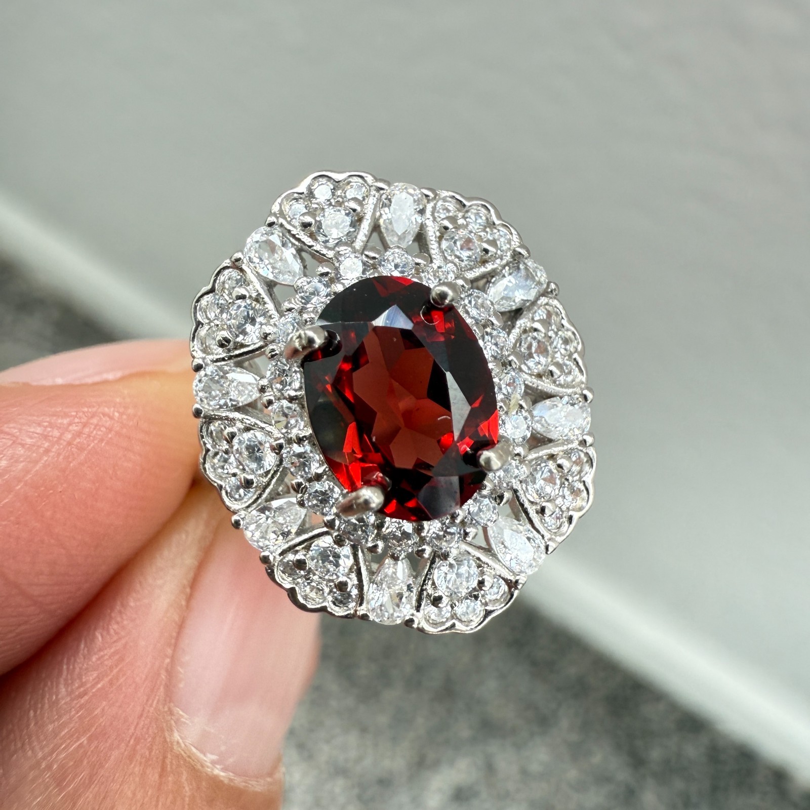 как выглядит 925 Sterling Silver Ring Oval 8x6mm Red Natural Rhodolite Garnet Gemstone Zircon фото