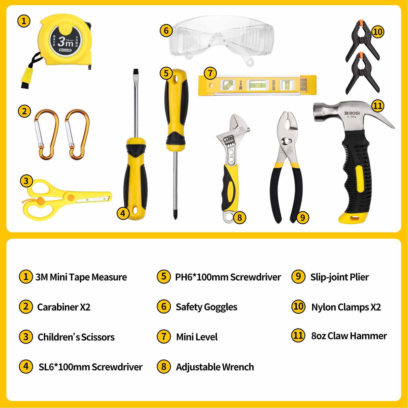 14 PCS Hand Tool Set With Storage Bag Home DIY Learning Kit Boys Girls