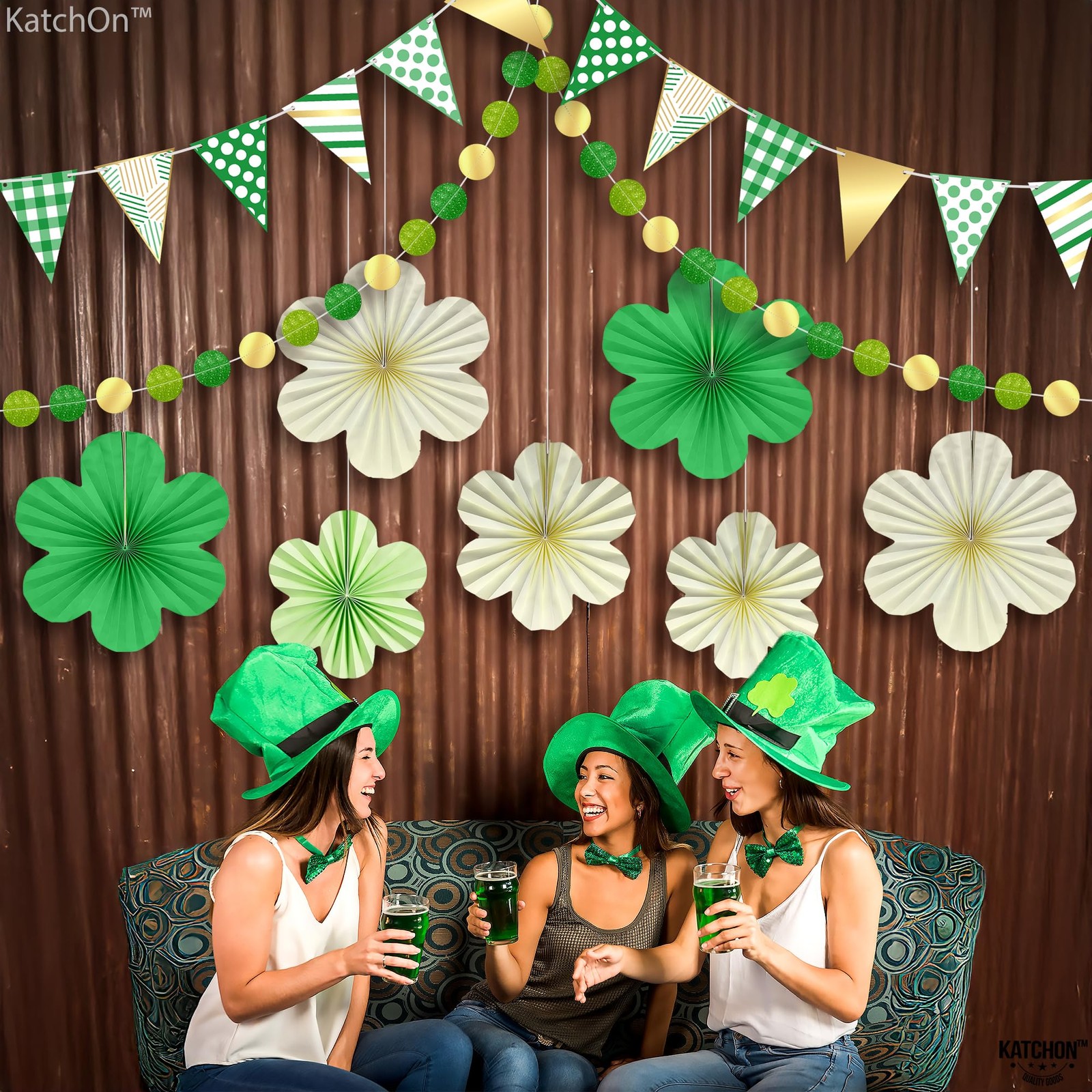 как выглядит KatchOn, St Patricks Day Hanging Decorations Set - Pack of 9 White Green фото