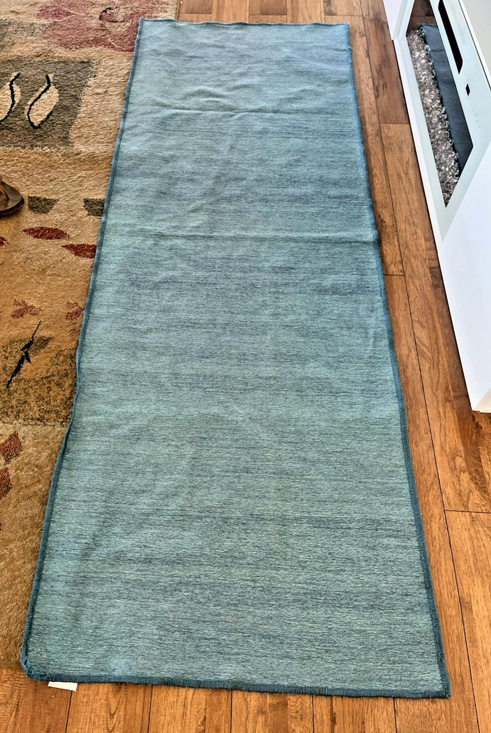 как выглядит Ruggable Solid Aqua Flatwoven Washable Runner Rug 2.5x7 Without Pad фото