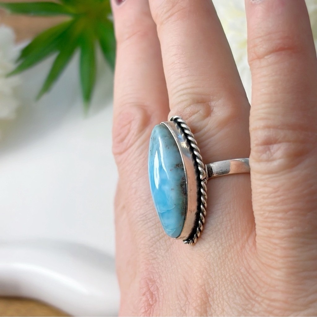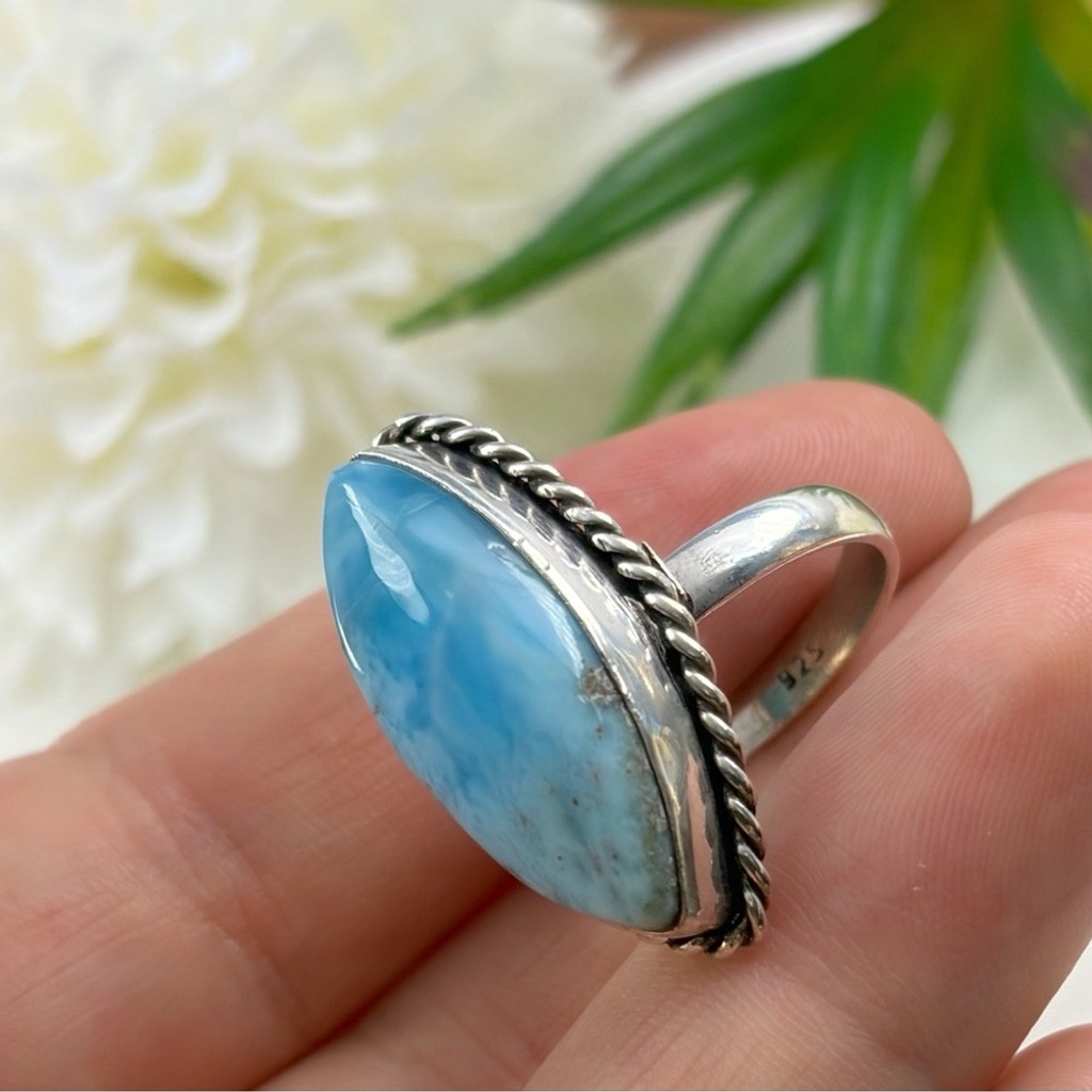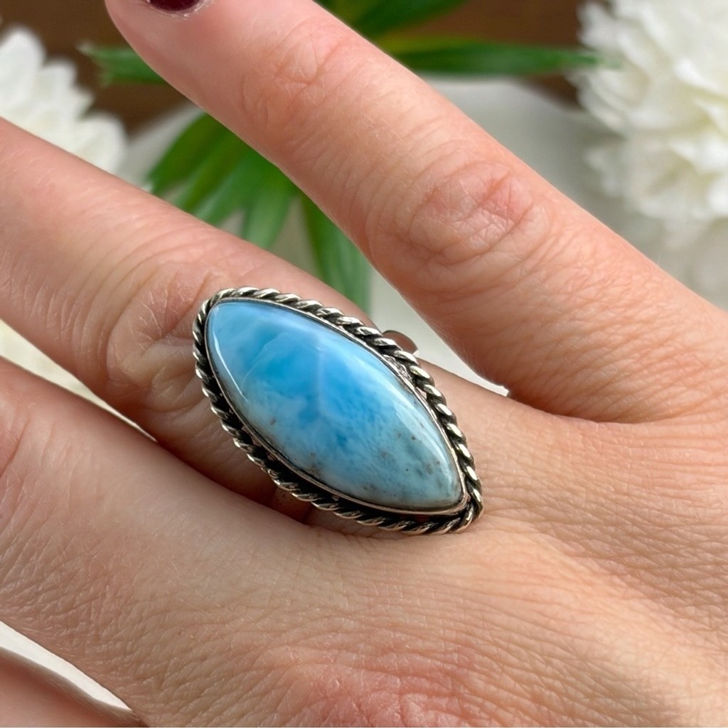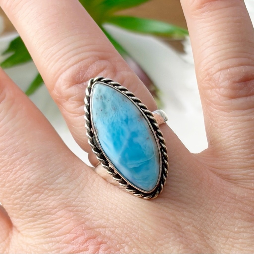 Larimar Ring Size 7 Marquise Boho Southwest New Sterling Silver 925 Overlay