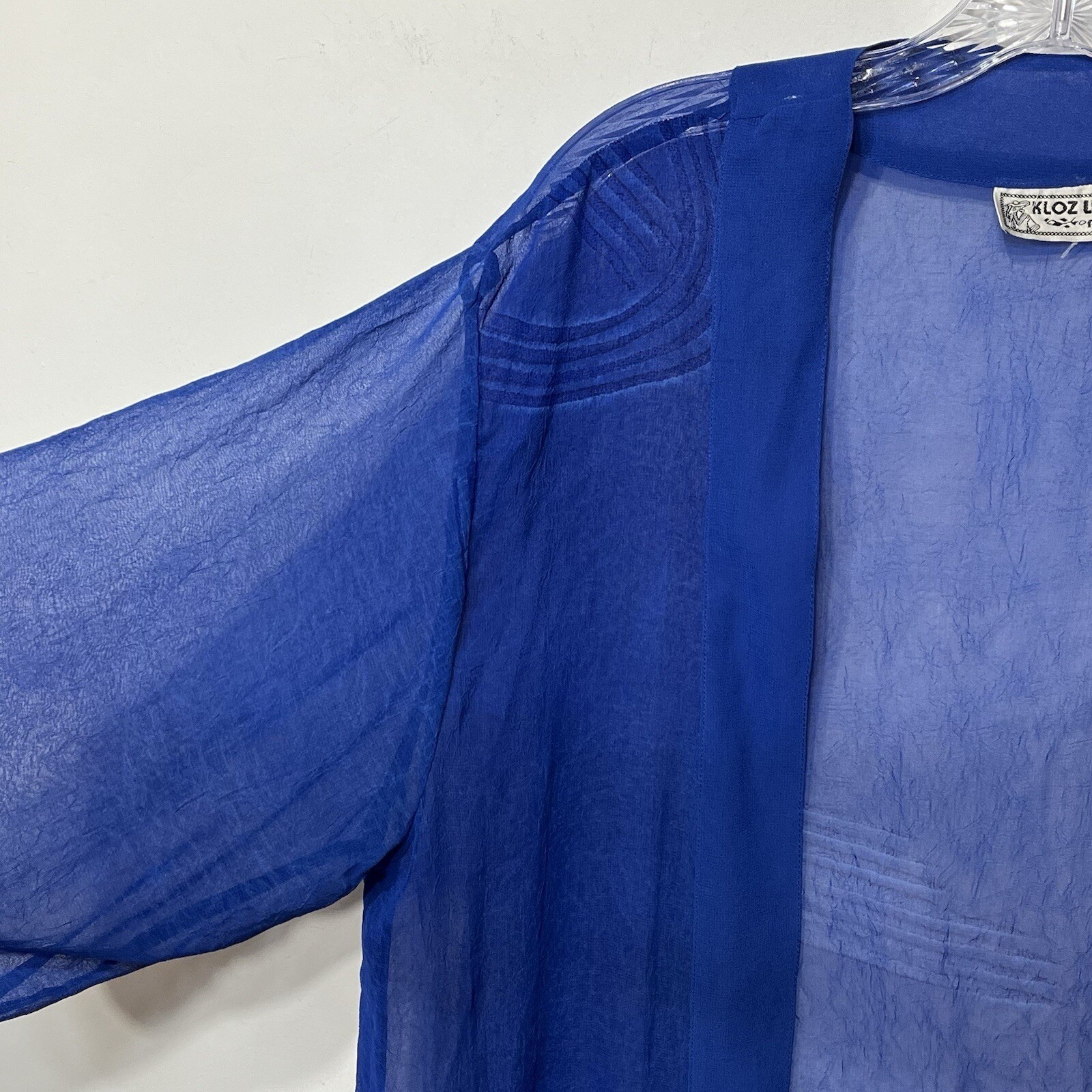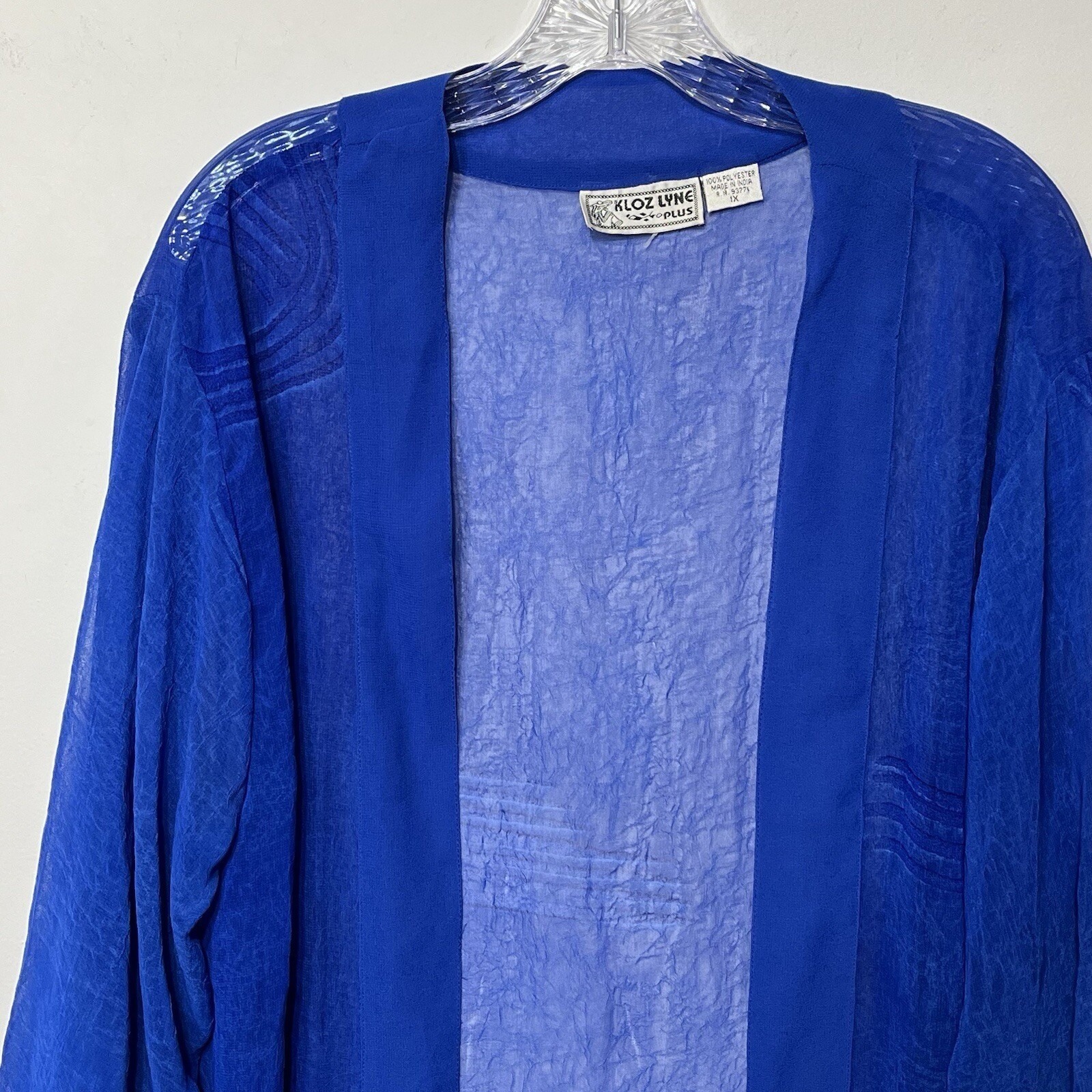 как выглядит KLOZ LYNE PLUS Royal Blue Sheer Duster Kimono Cardigan Long Sleeve Size 1X фото