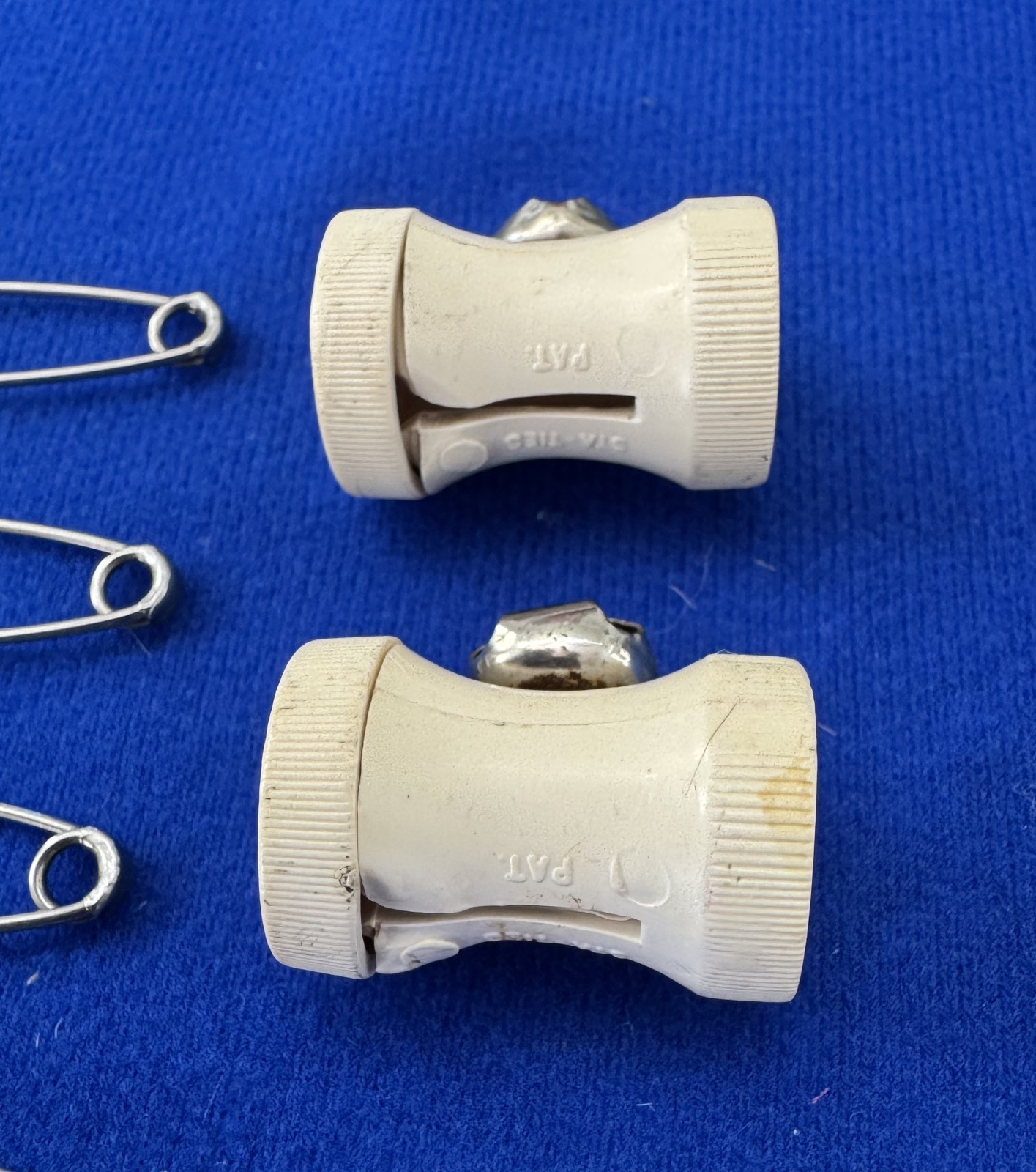 как выглядит Vintage 1950s 4 Blue Bear Baby Diaper Pins and 2 Baby Rattles фото