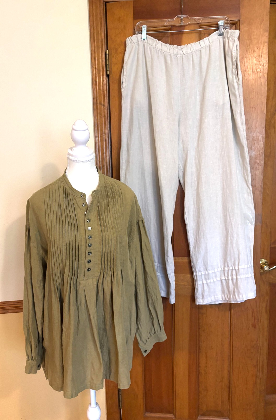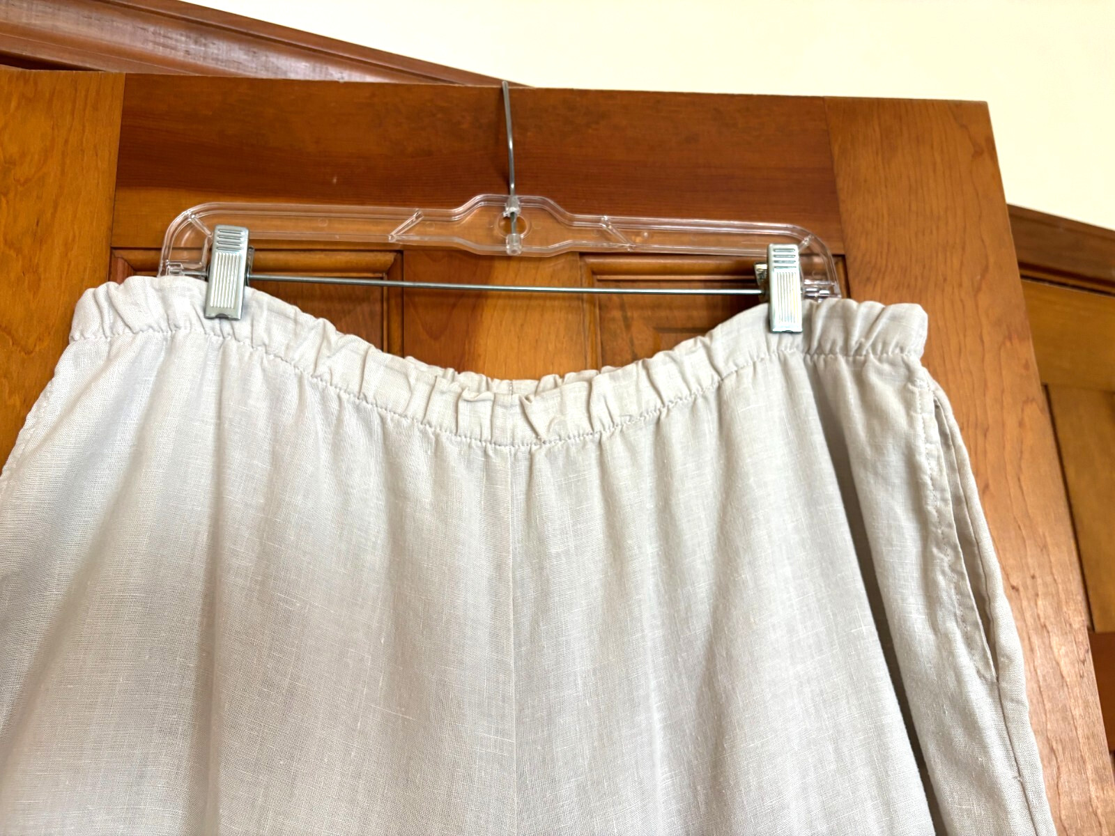 как выглядит BRYN WALKER Beige full leg linen pants with seams and pockets. Size Large. Nice фото