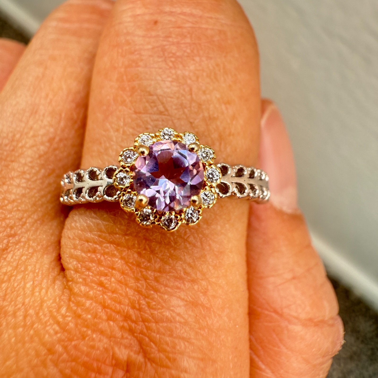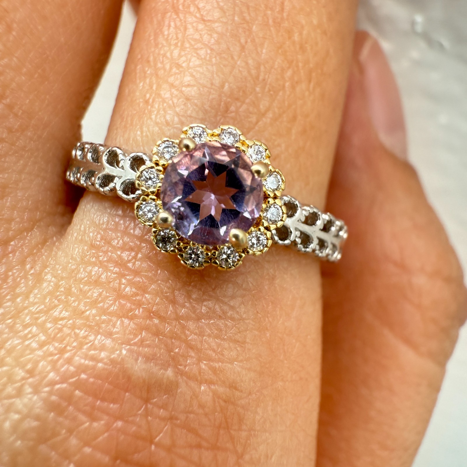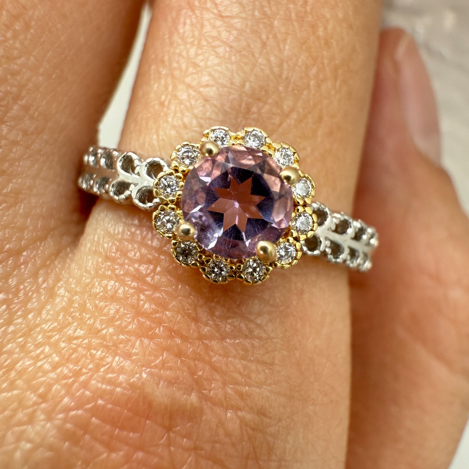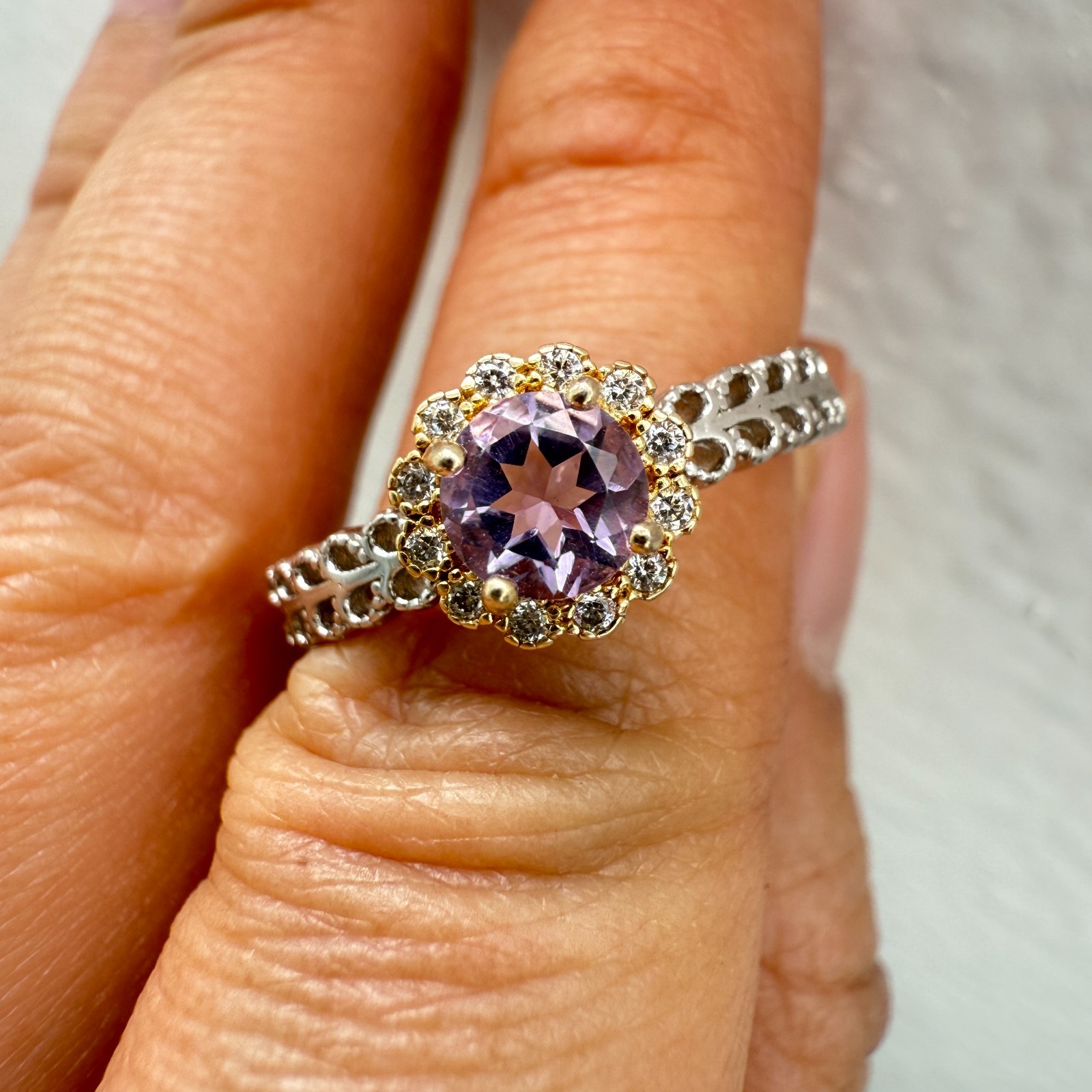 как выглядит 925 Sterling Silver Ring 5mm Natural Purple Amethyst Gemstone Zircon Flower Cute фото