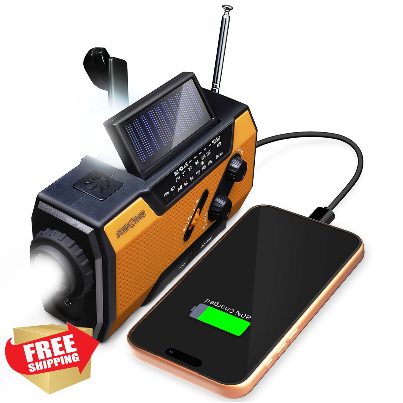 FosPower NOAA Weather Radio A1, Orange, 7400mAh Power Bank, SOS Alarm