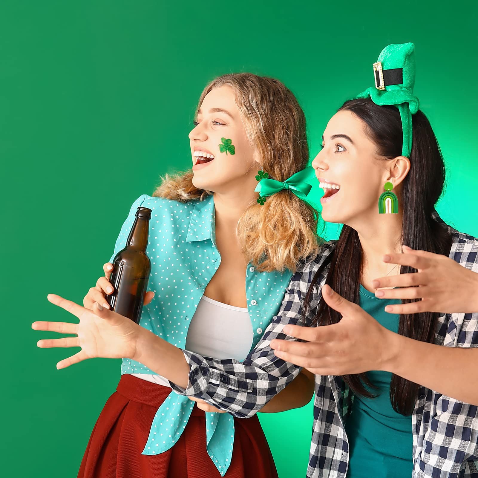 St Patrick's Day Earrings for Women,Irish Shamrock Drop Dangle Medium, green