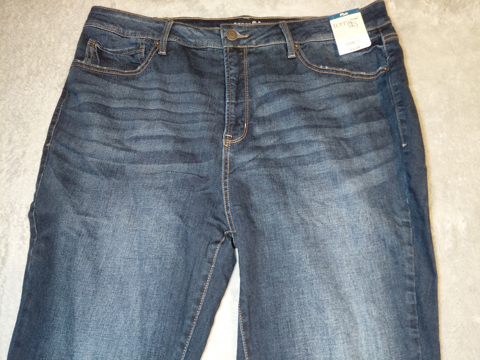 как выглядит Terra Sky Womens Plus Size High Rise Bootcut Stretch Jeans Dark Wash Size 16W фото
