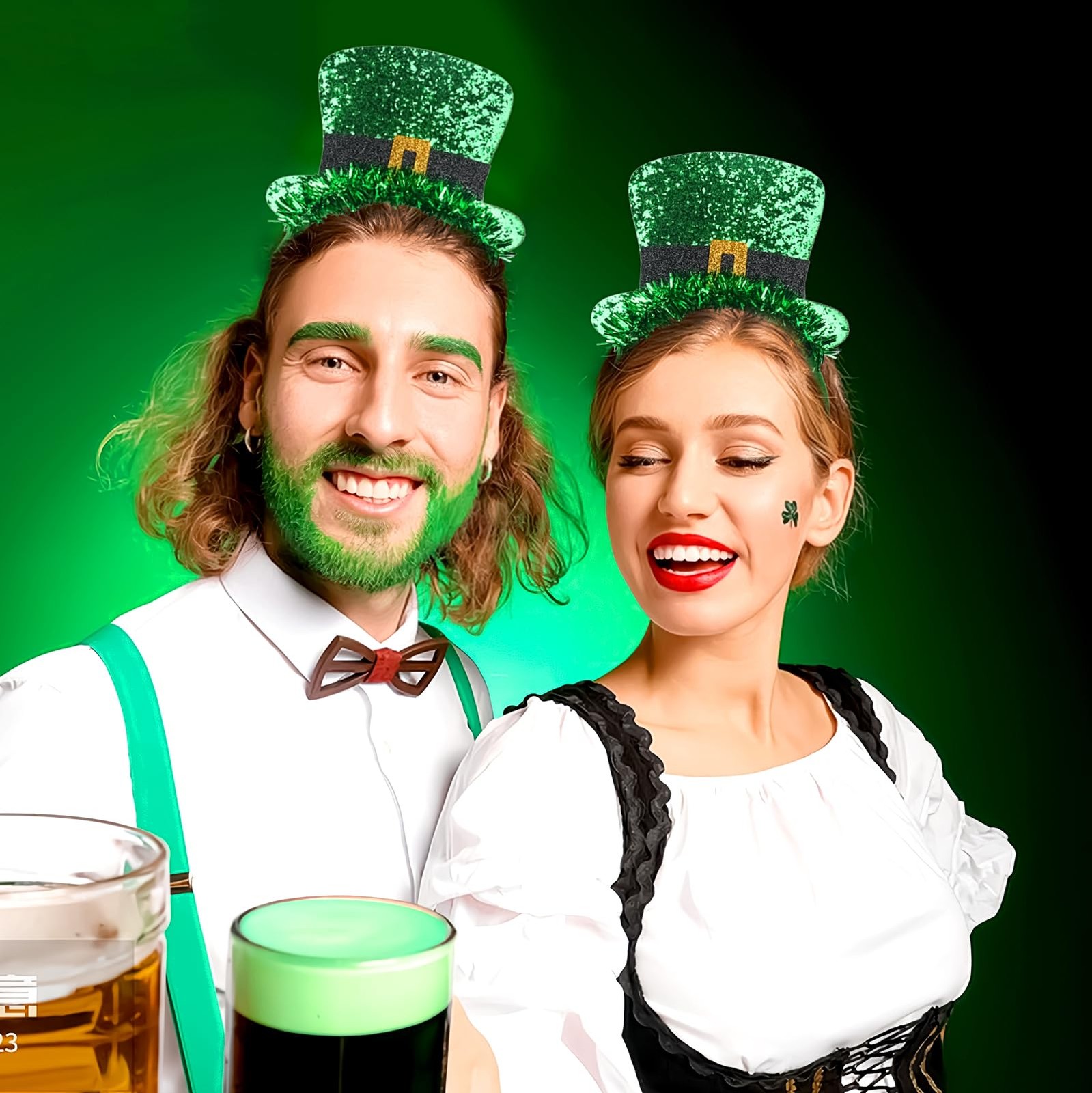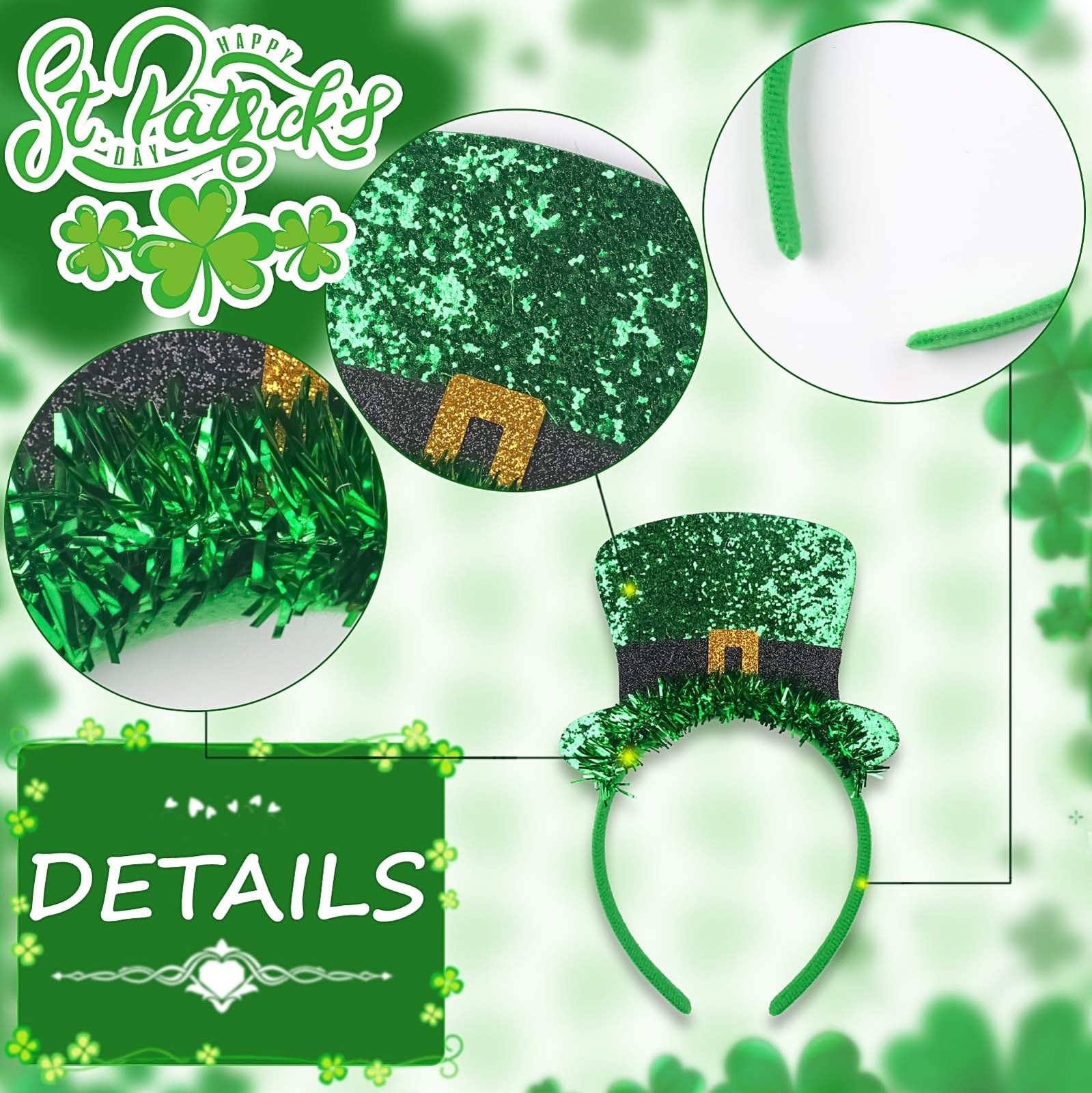 Jacnkb St. Patrick's Day Headband Green Hat Hairband Glitter Medium, Style a