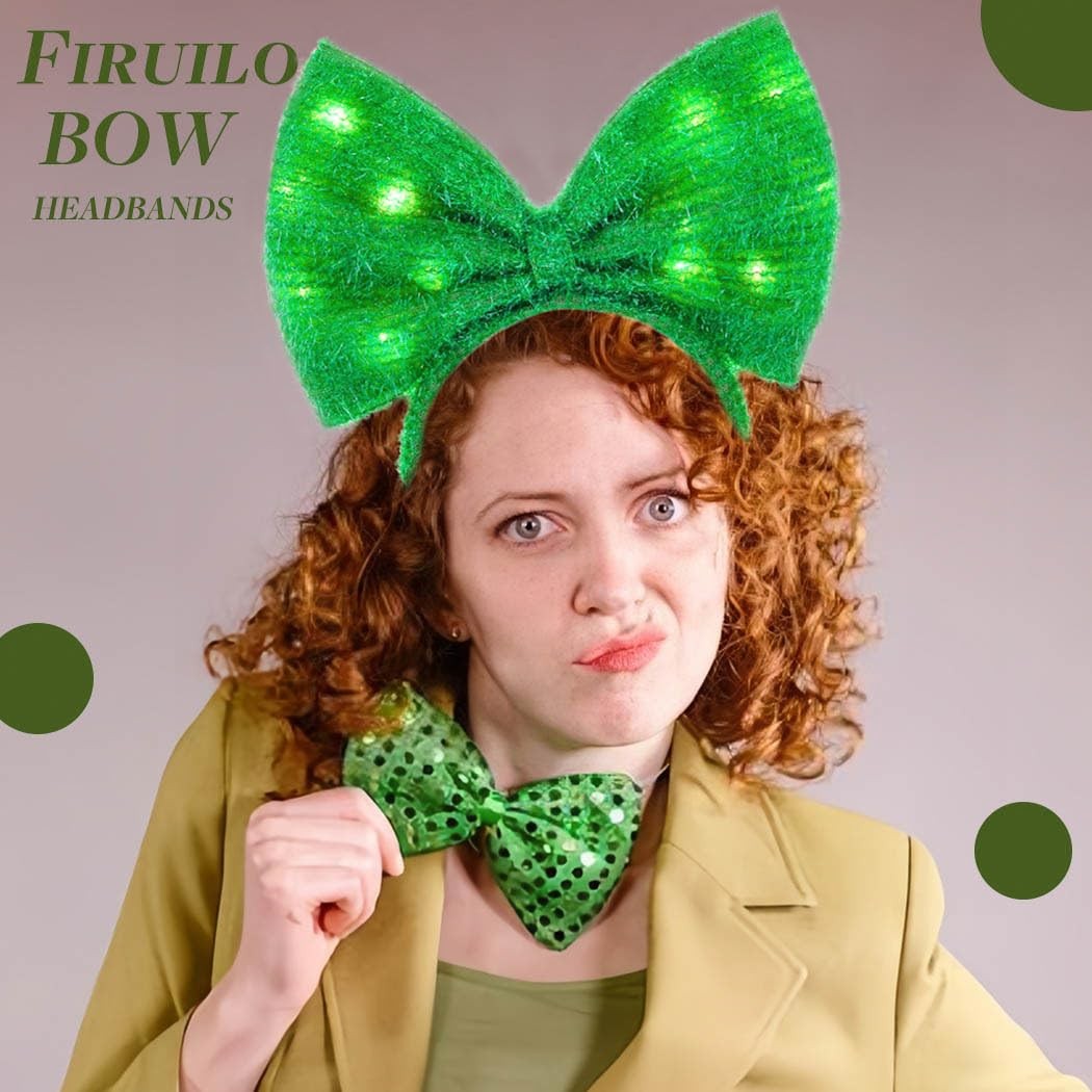 Firuilo Light Up Christmas St Patricks Headbands Led Green Standard,