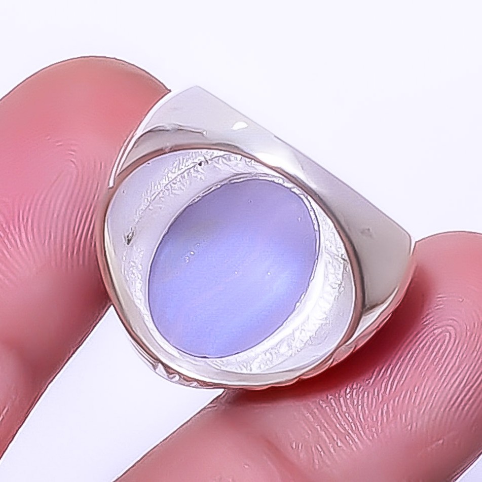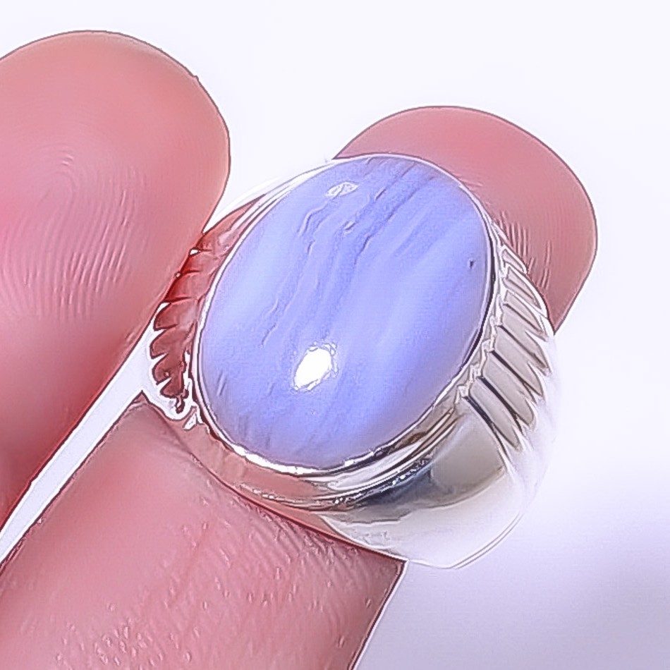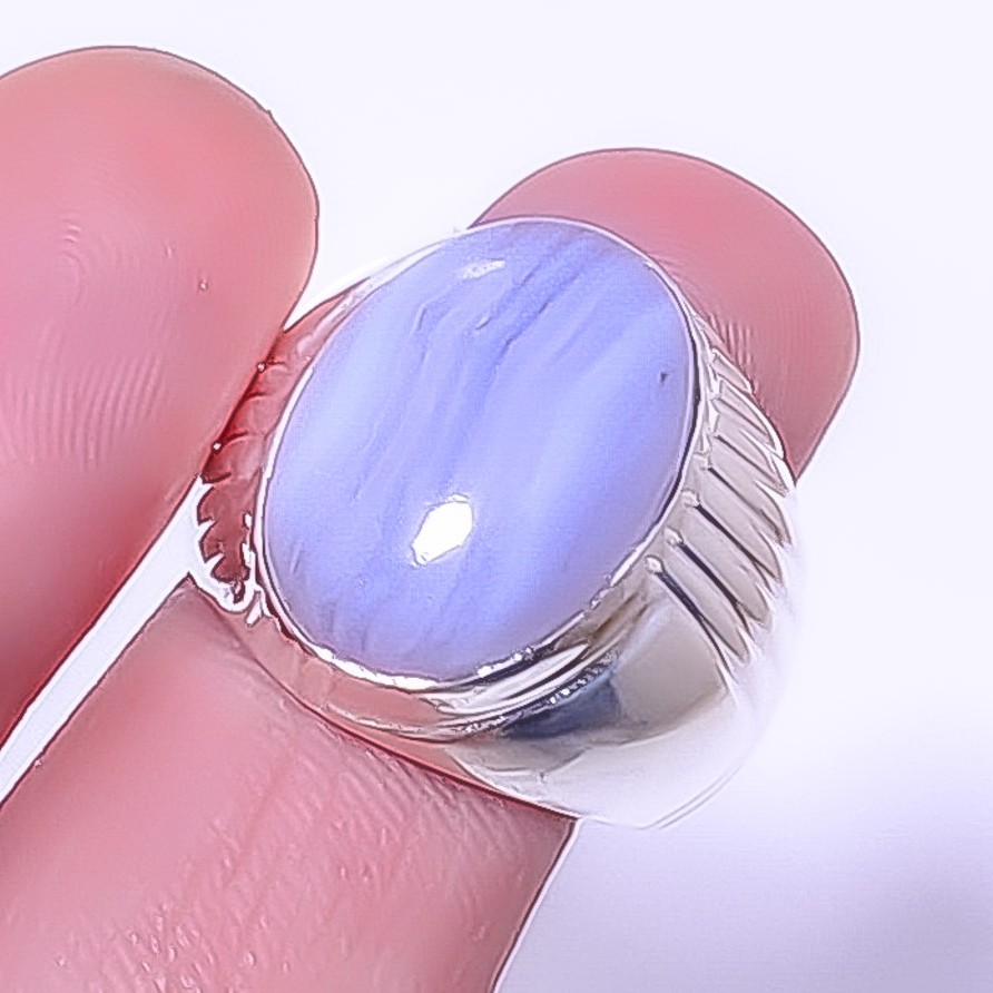 Namibian Blue Lace Agate 925 Sterling Silver Unisex Ring s.8 R7546-25