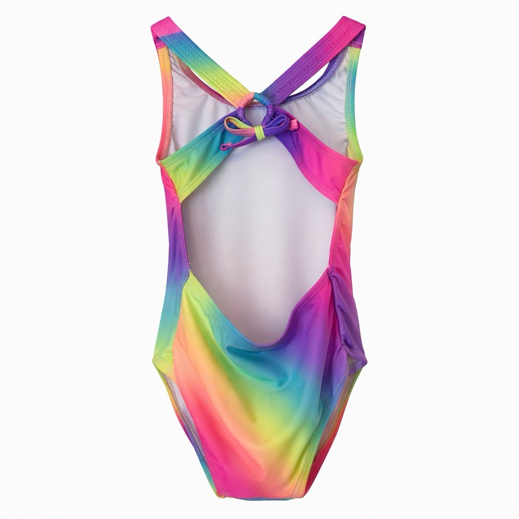 Children's Place Girls Sz 4 Rainbow Gradient One Piece Swimsuit UPF 50 Tie Back