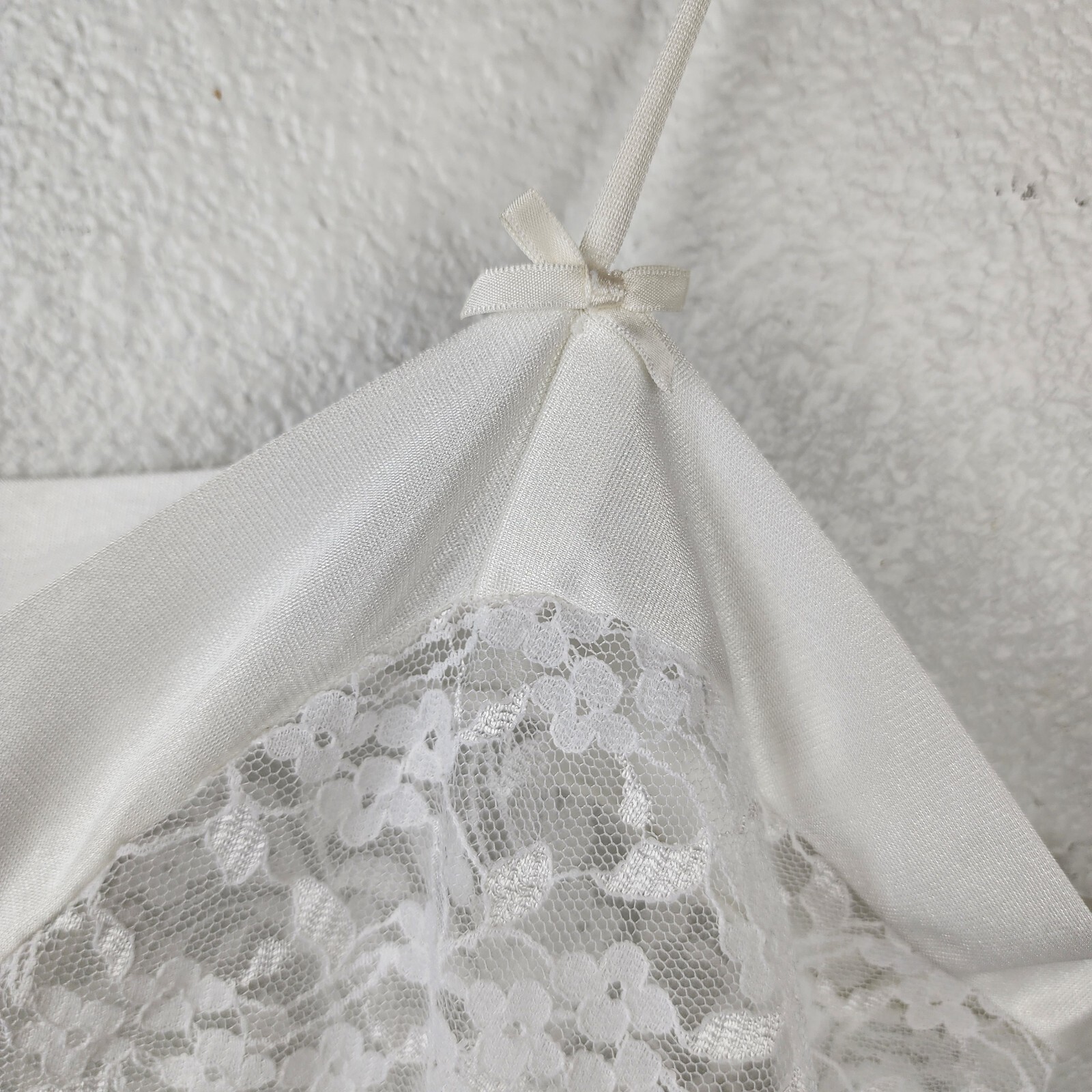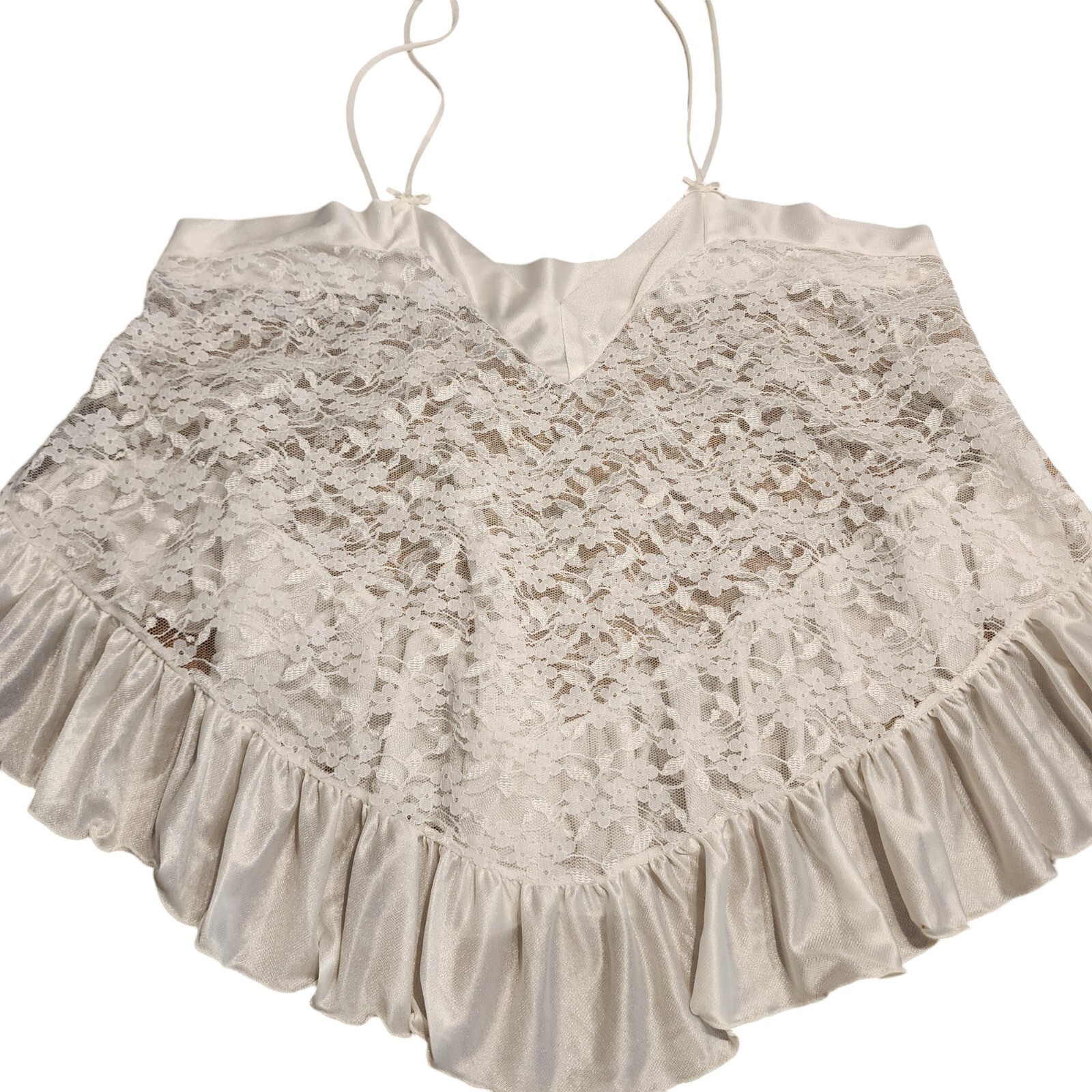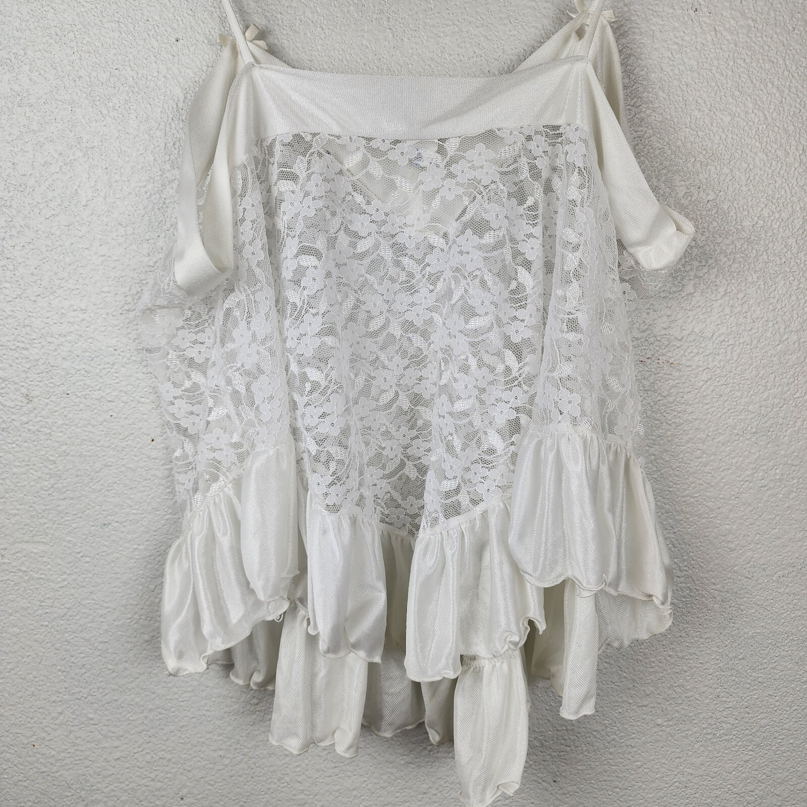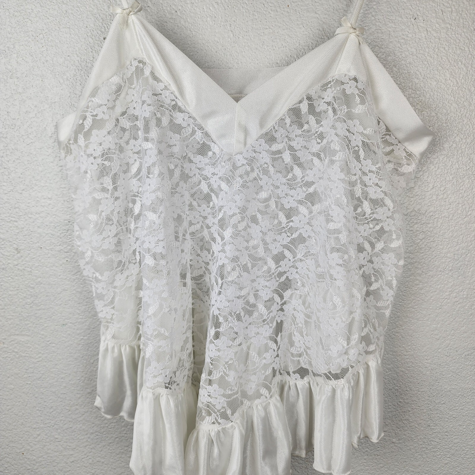 VTG White Lace Camisole XL Sheer Floral Babydoll Cottagecore Bridal Lingerie Top