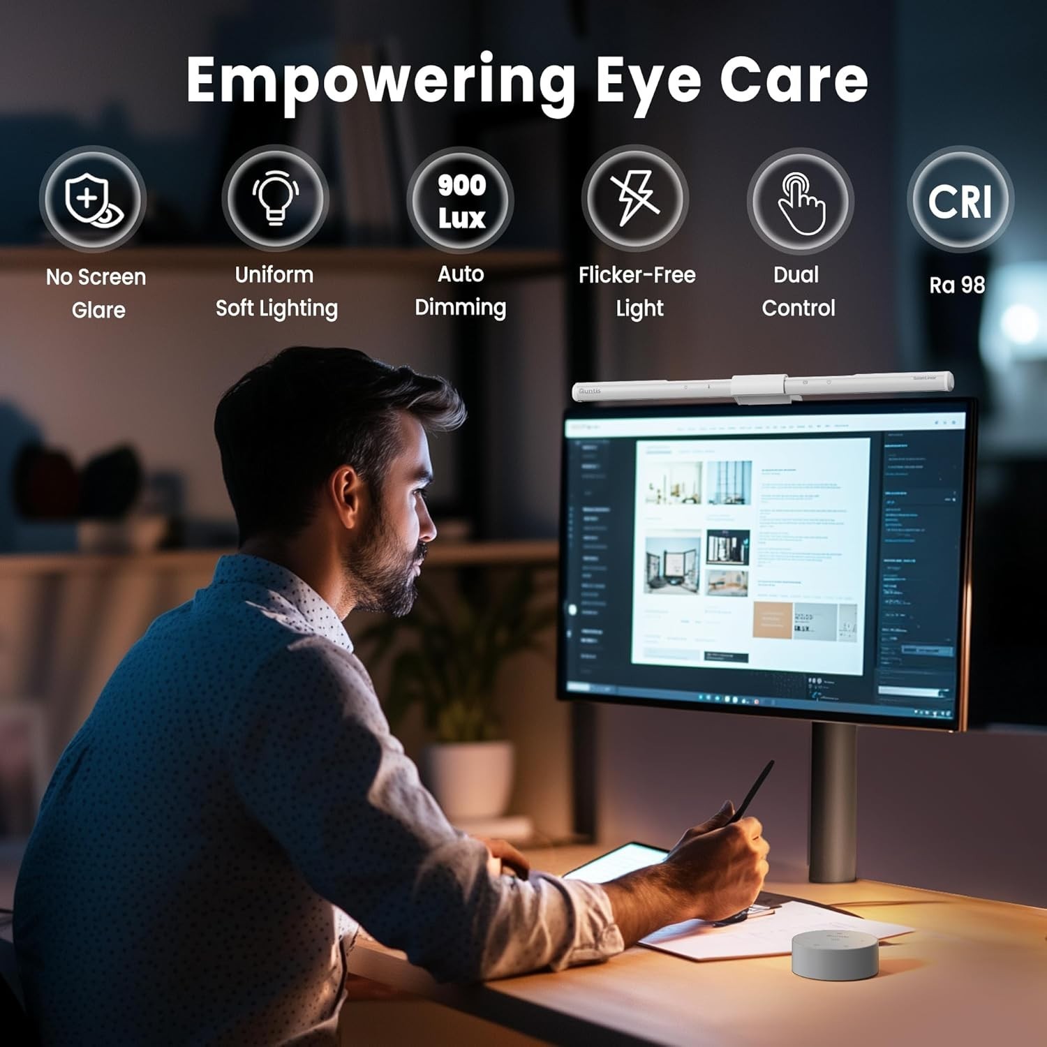 Monitor Light Bar Pro White, Eye-Care No Glare USB Computer Lamp, Stepless Di...