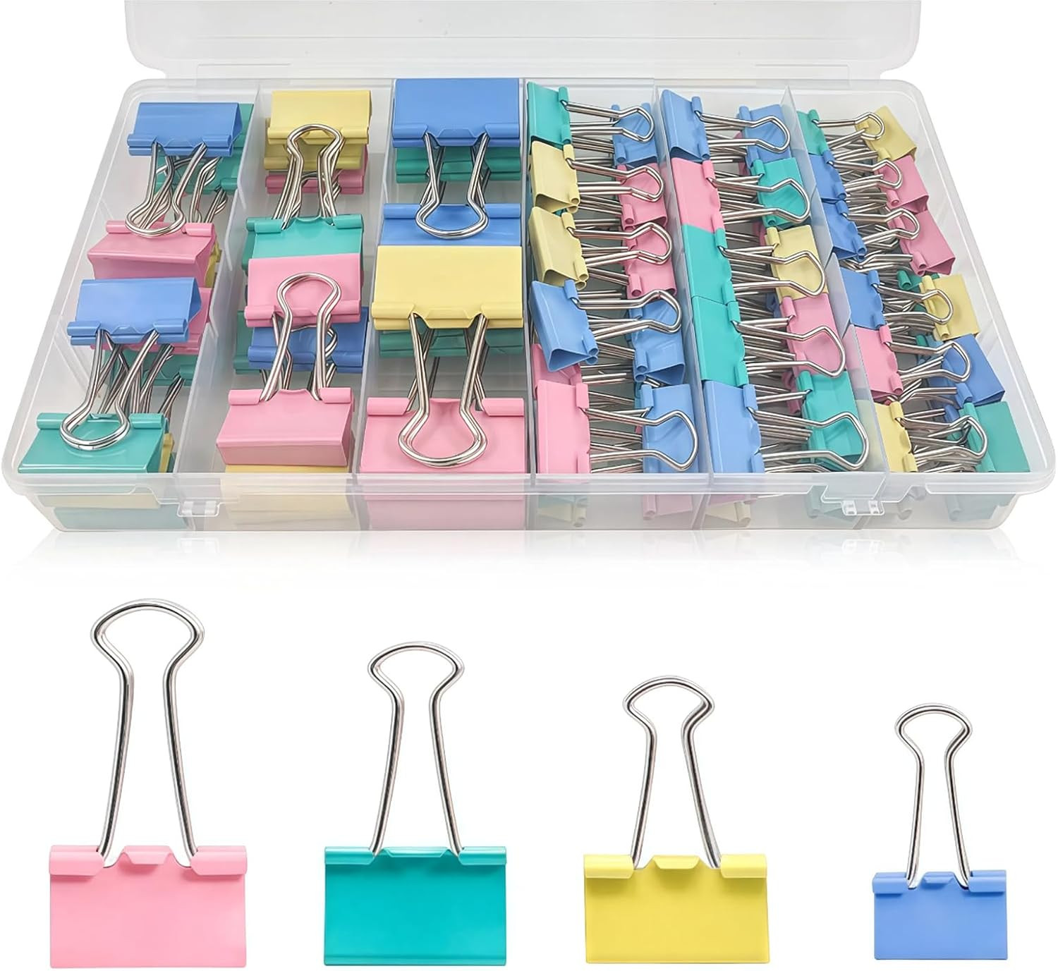 110PCS Colored Binder Clips Assorted Sizes,4 Sizes Large Medium Small Mini Paper