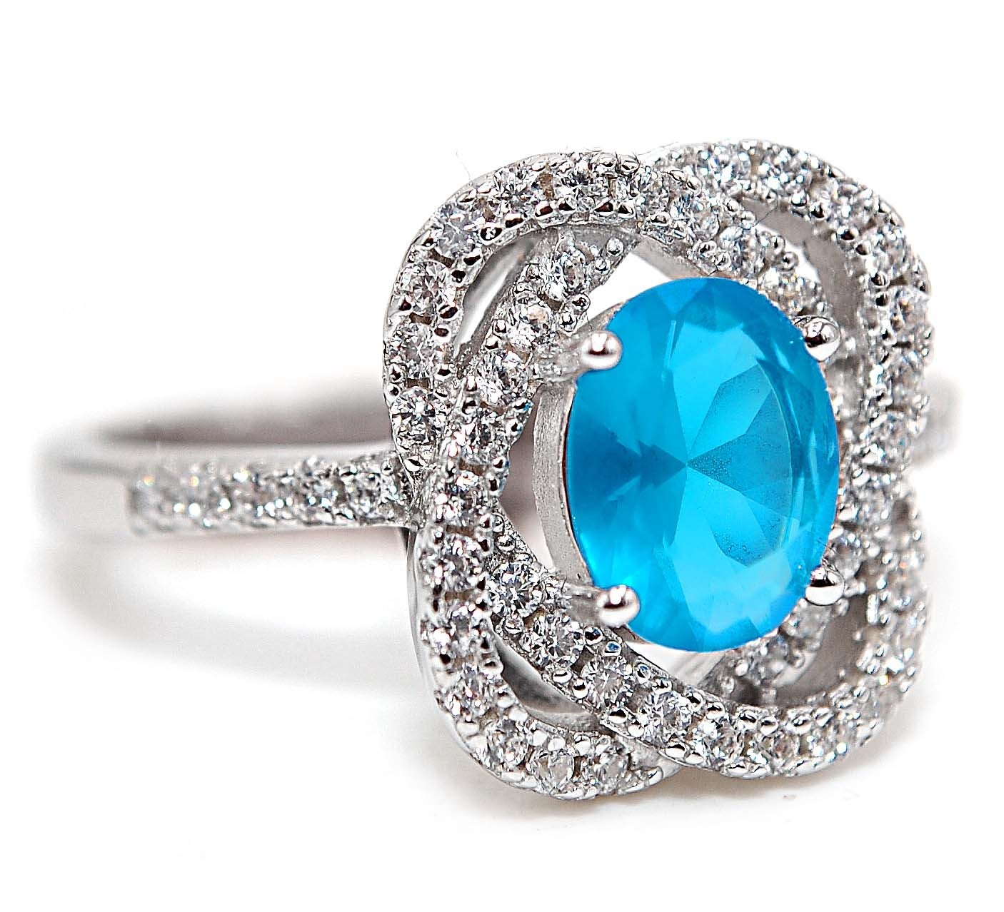 как выглядит 2CT Blue Topaz White Topaz 925 Solid Sterling Silver Ring Jewelry Sz 7 MK6-2 фото
