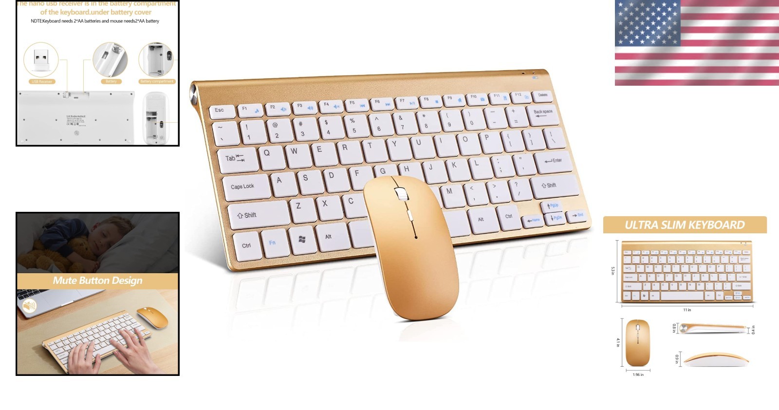 Особенности: Quiet Keys, Slim Design, Ergonomic Design, Compact, Plug & Play, Noise Reduced Keys, Silent Click, High Sensitivity Mouse