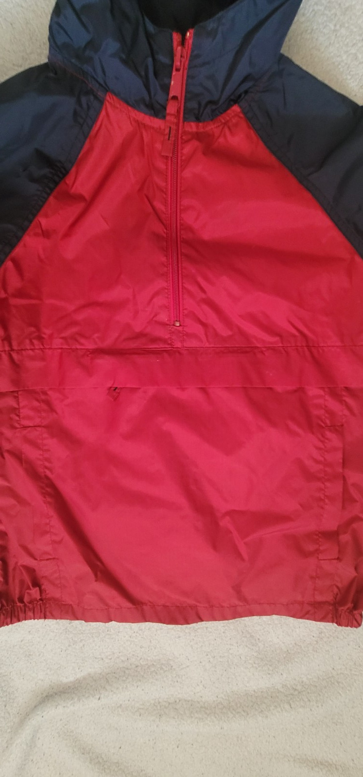 как выглядит THE CHILDRENS PLACE Kids Half Zip Red/Blue Windbreaker Hooded Nylon Sz S 5/6 фото