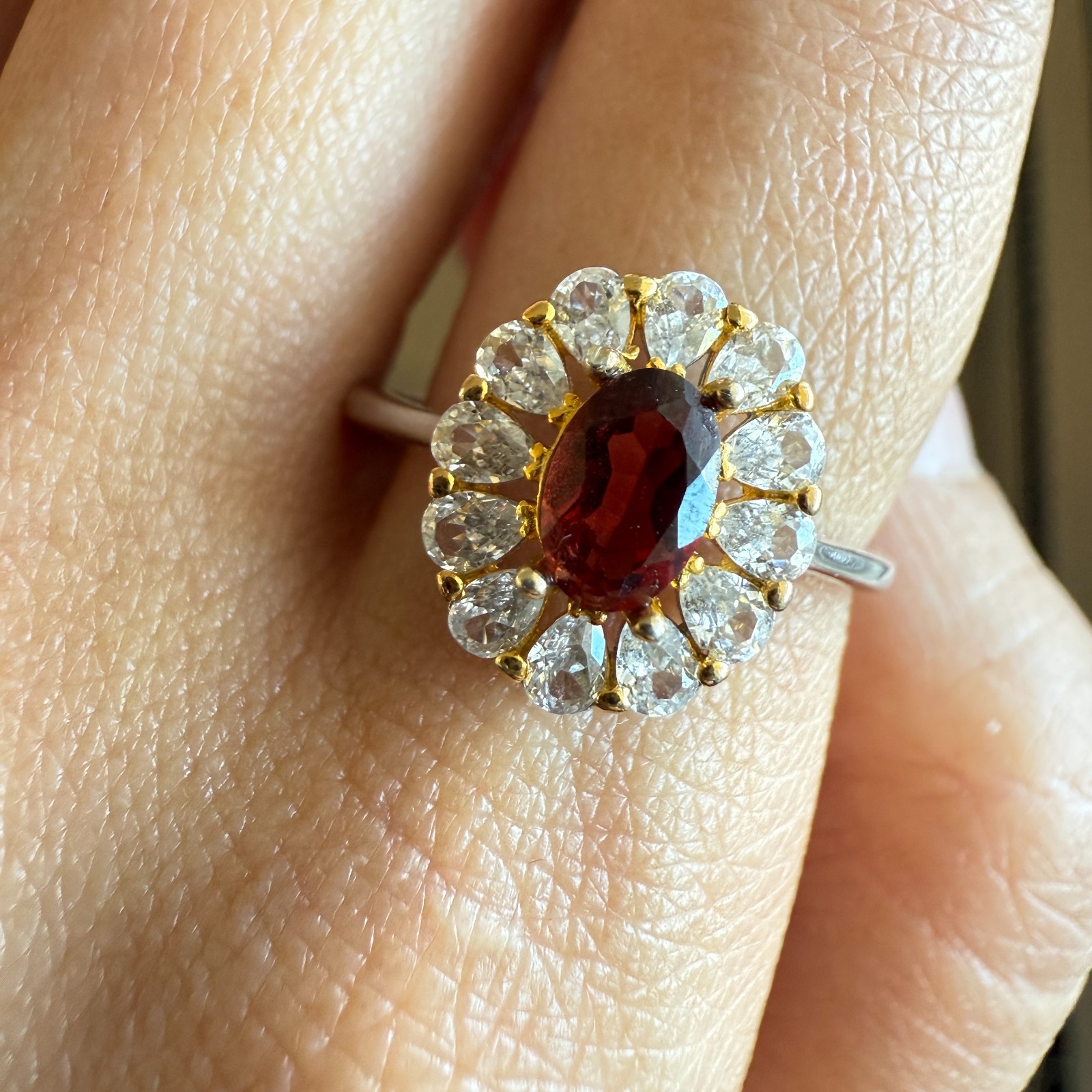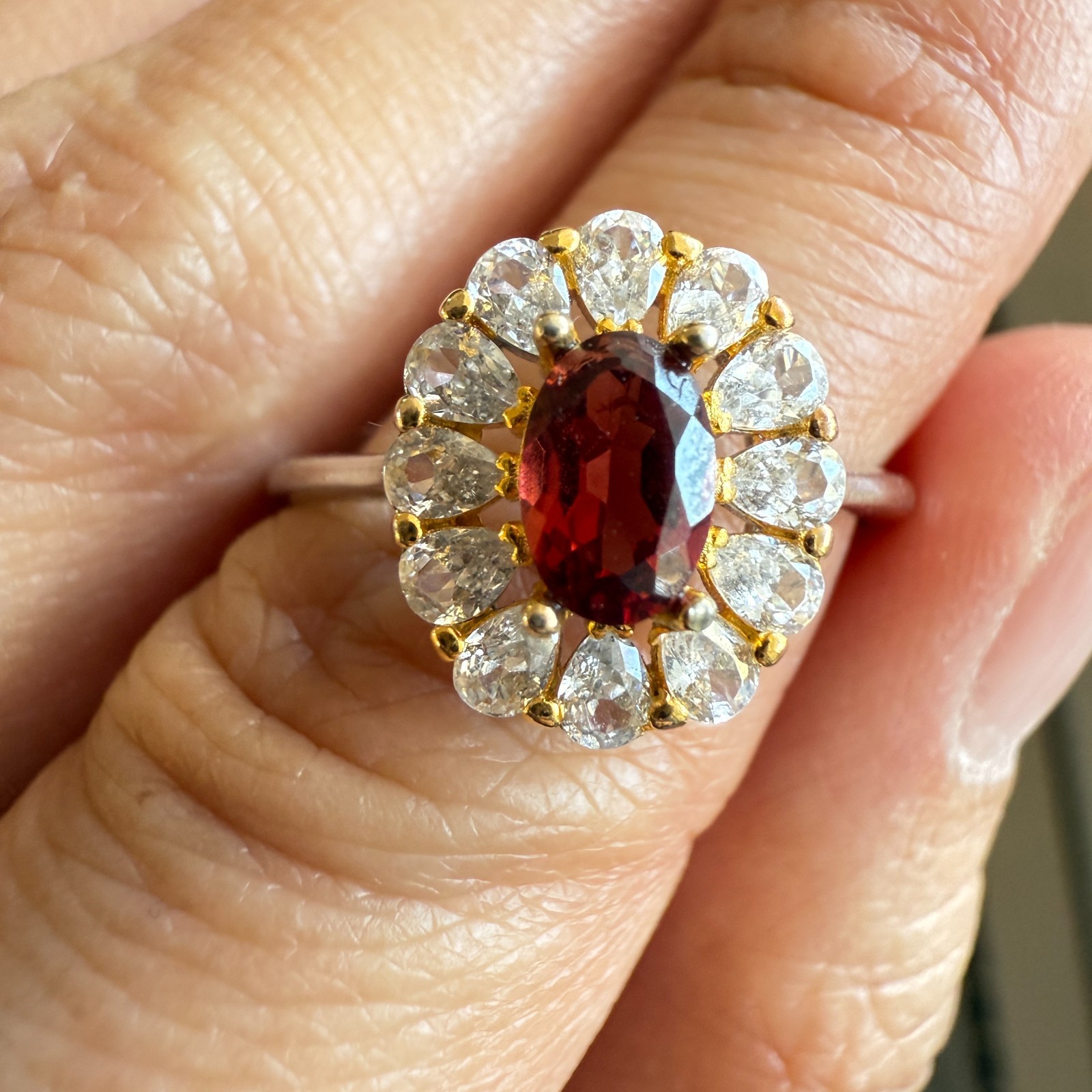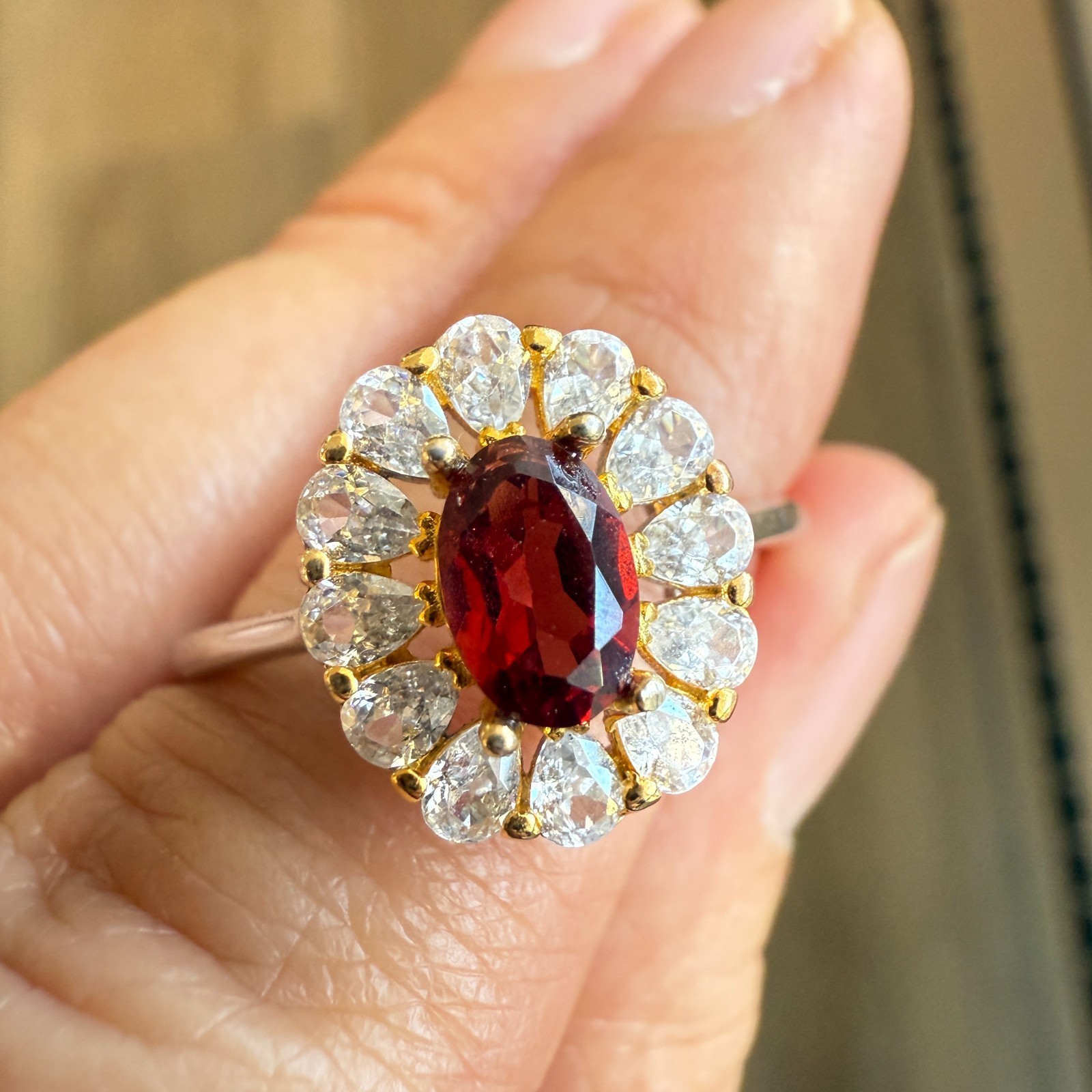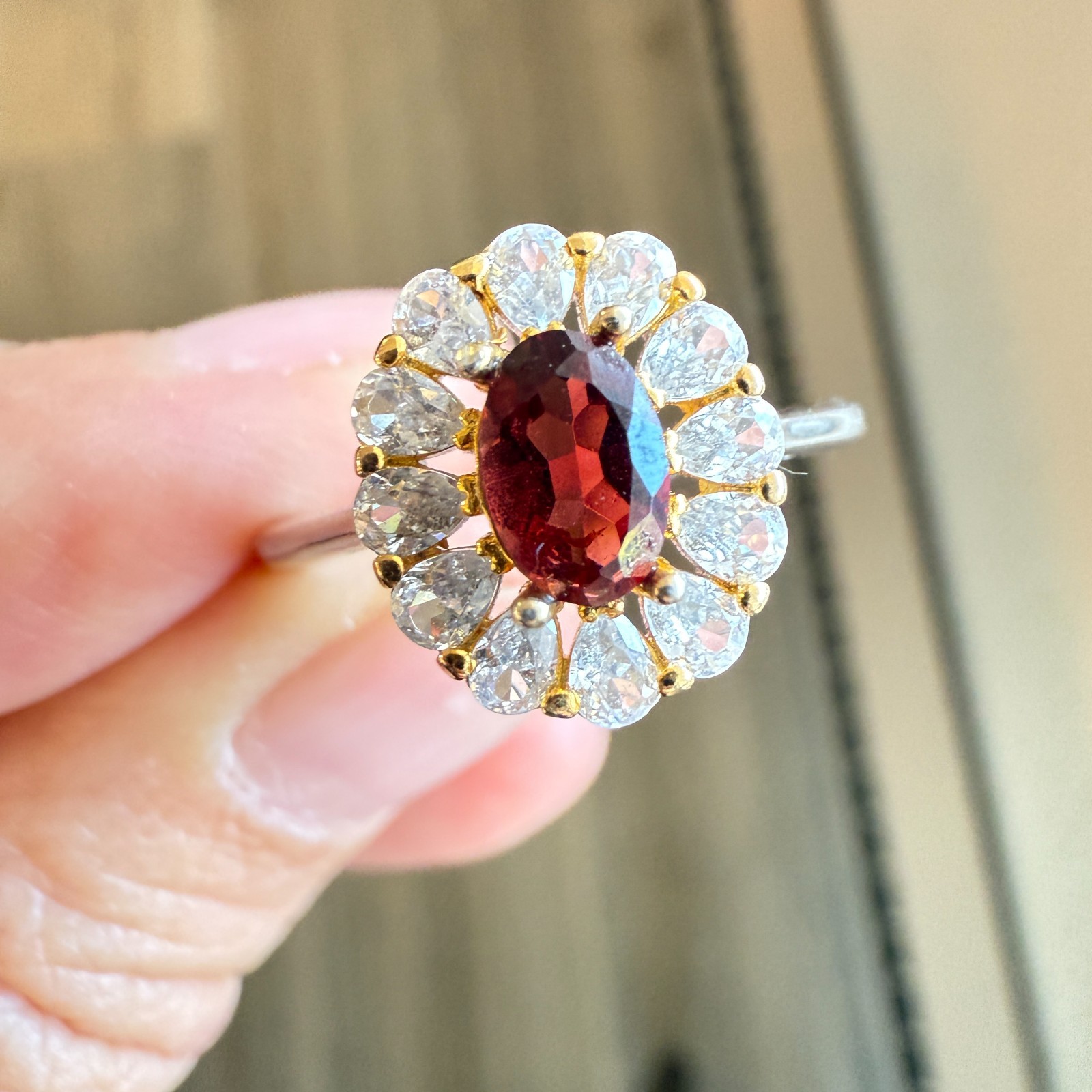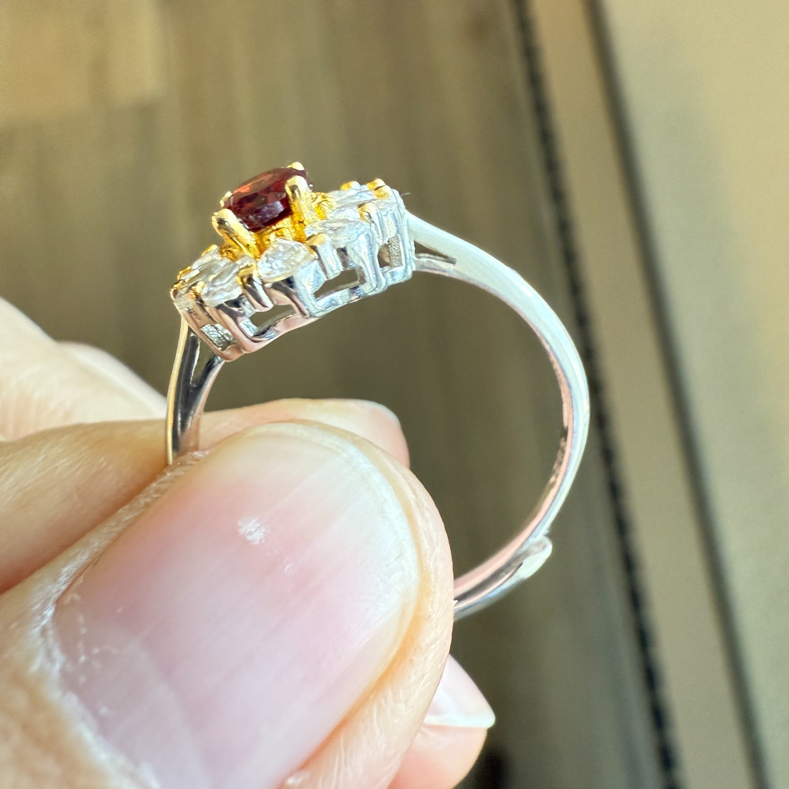 как выглядит 925 Sterling Silver Ring 6x4mm Natural Rhodolite Garnet Gemstone Zircon Flower фото